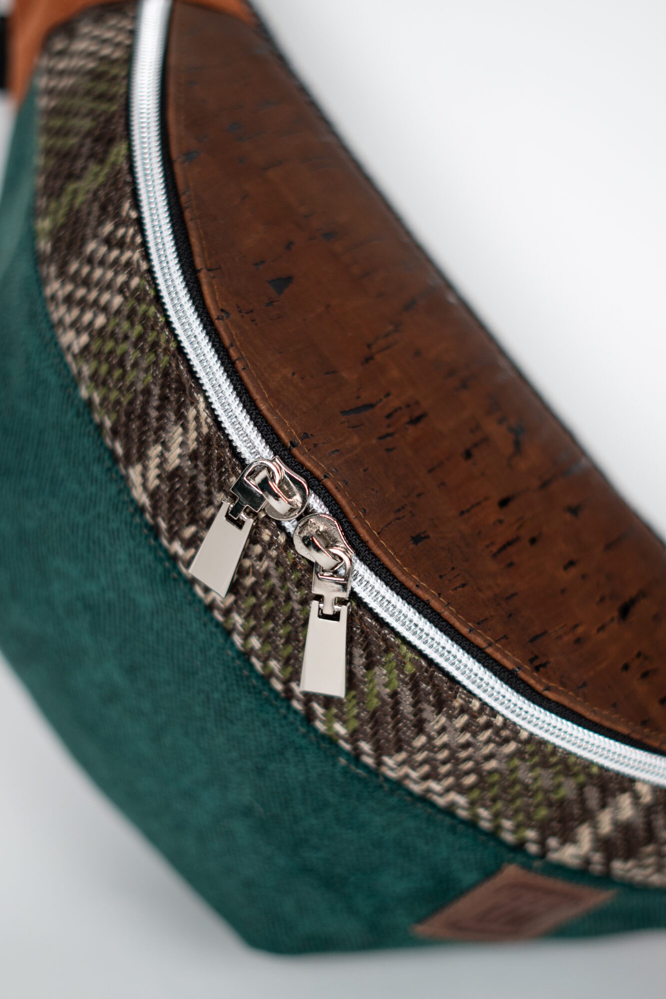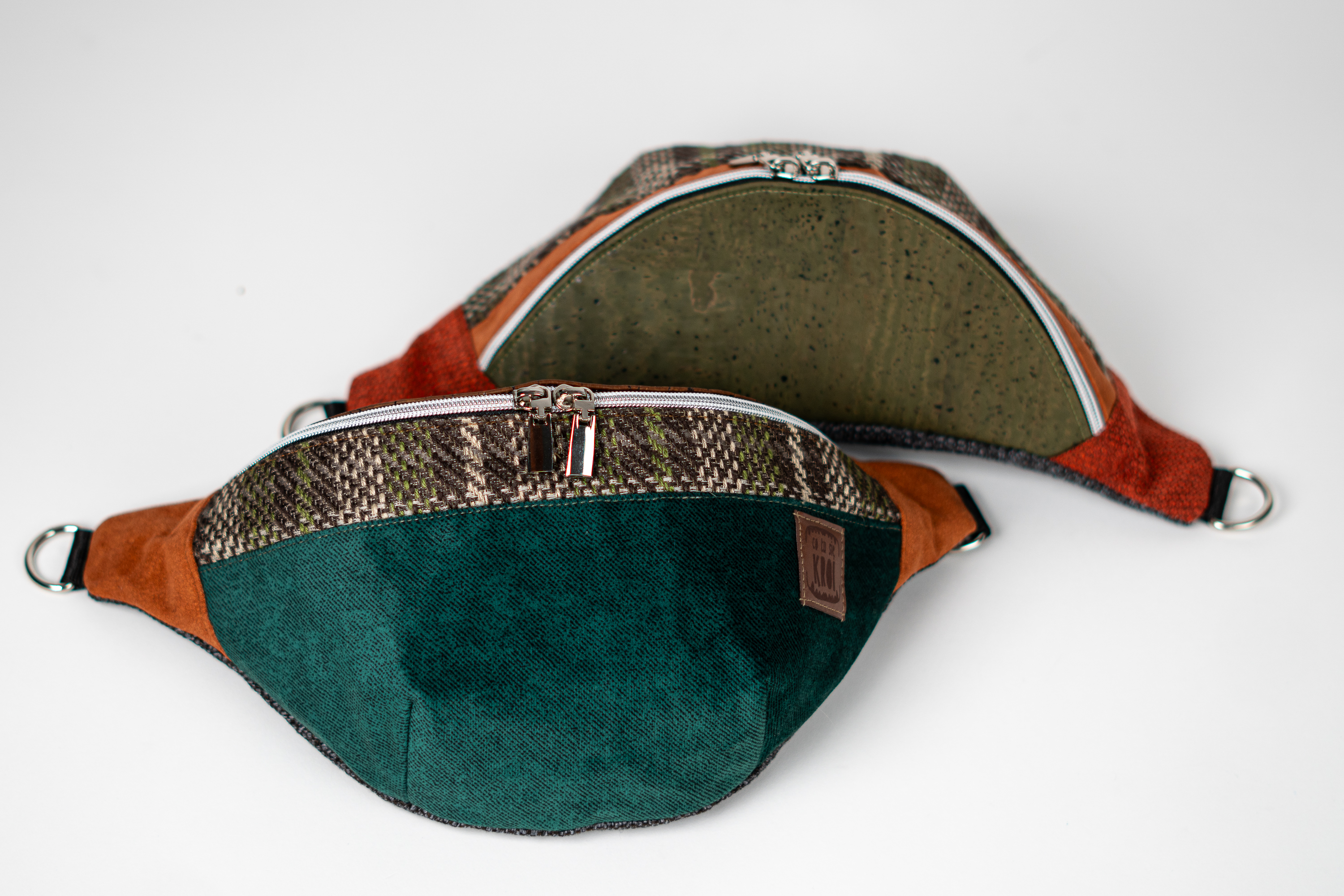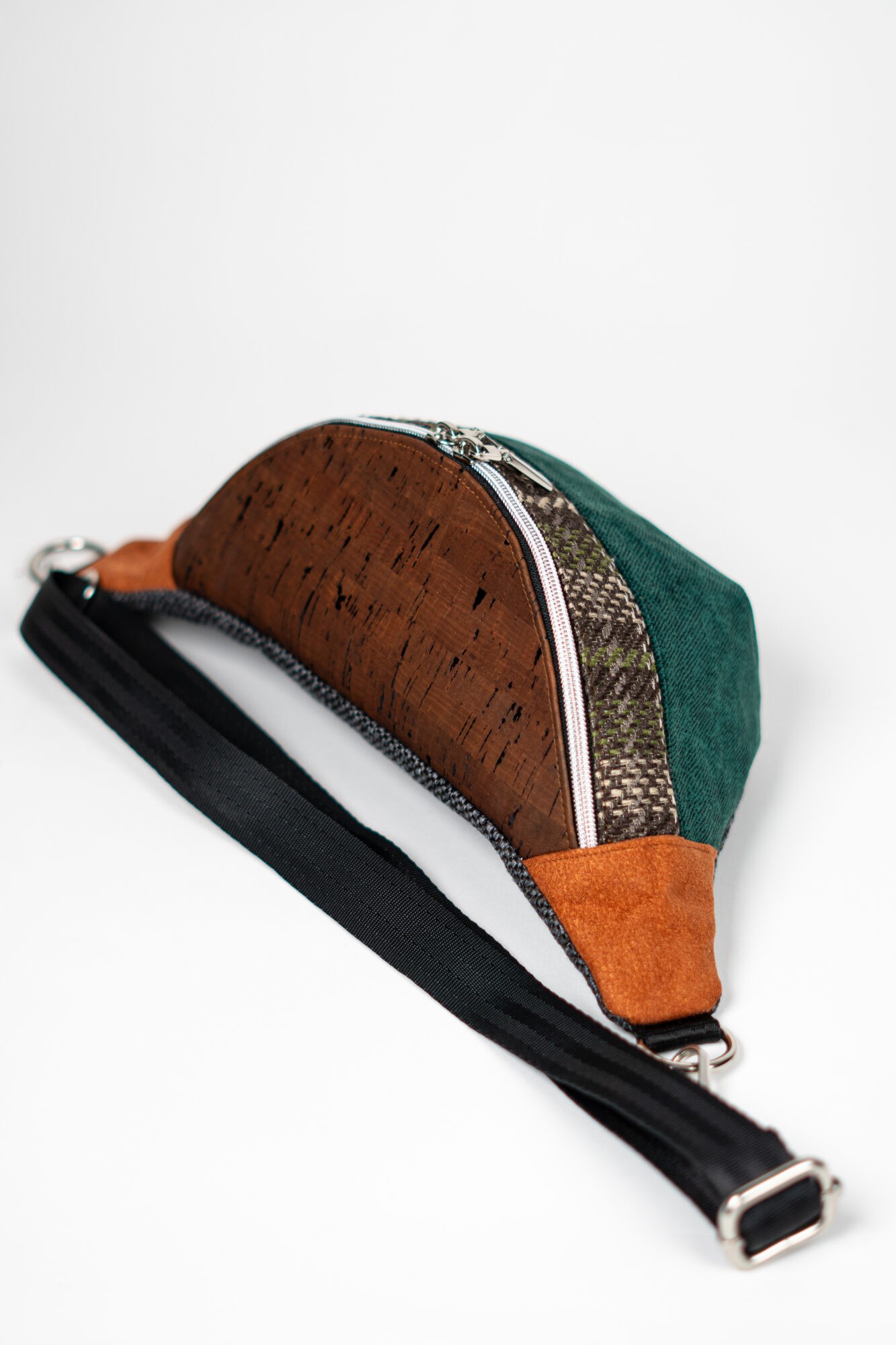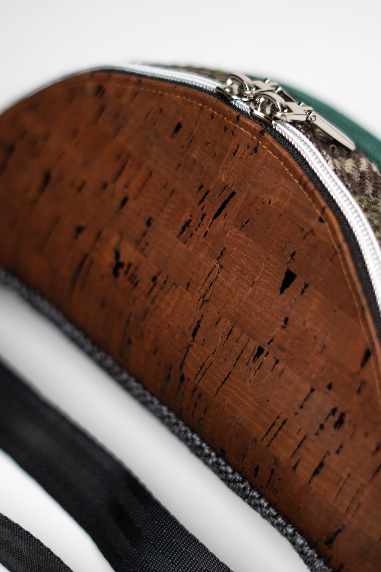 MATERIAŁ: kolorowa tkanina korkowa, tkaniny tapicerskie, wersja z bawełnianą podszewką 125 g/m2, pas samochodowy 25 mm.
