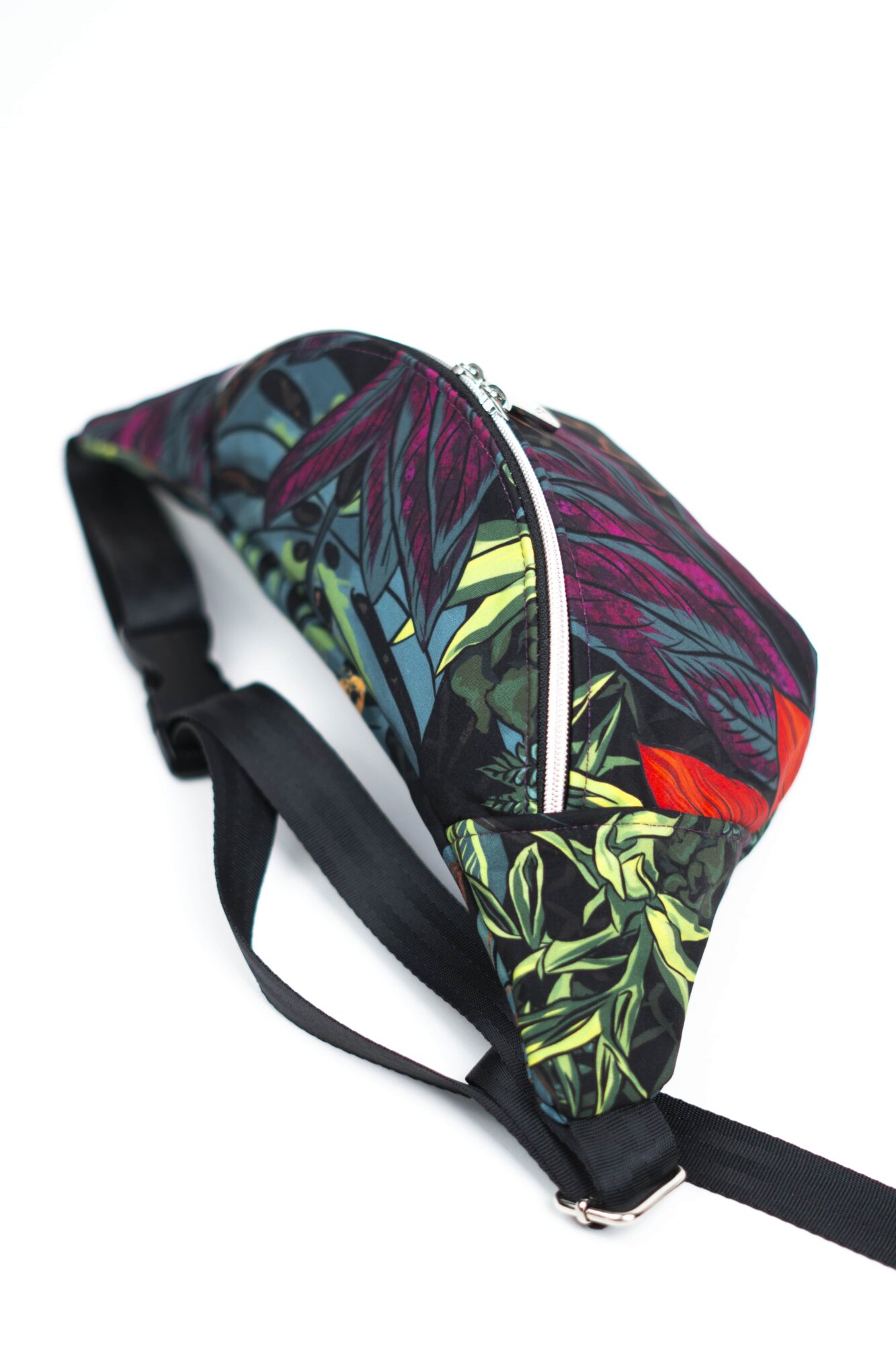 Nerka damska biodrowa z kolekcji MIEJSKA DŻUNGLA została zaprojektowana z myślą o miejskich dżunglach, które tętnią życiem. Dzięki ergonomicznemu kształtowi i regulowanemu paskowi, można ją nosić wygodnie zarówno na biodrach, jak i na ramieniu, co czyni ją wszechstronnym dodatkiem do każdej stylizacji. Kolorowe liście monstery dodają jej świeżości i sprawiają, że wyróżnia się w tłumie, a czarna baza zapewnia łatwość w łączeniu z innymi elementami garderoby.