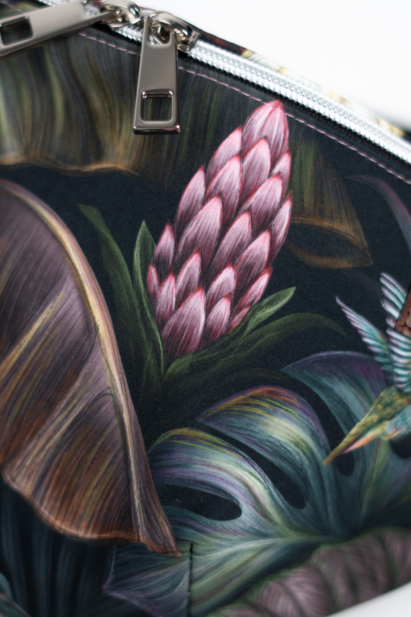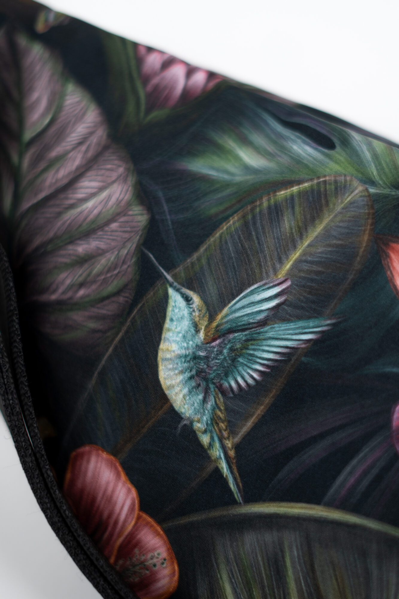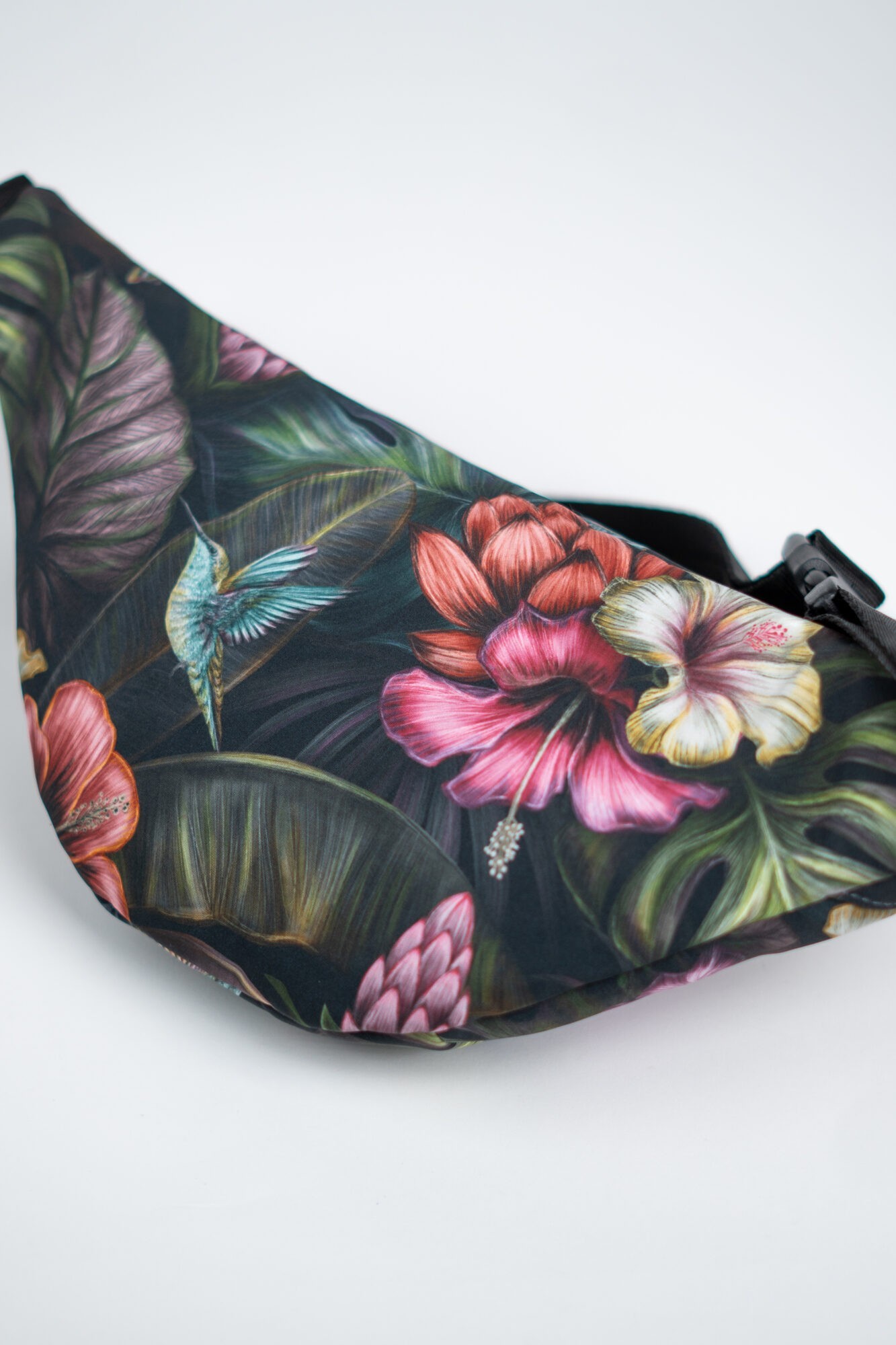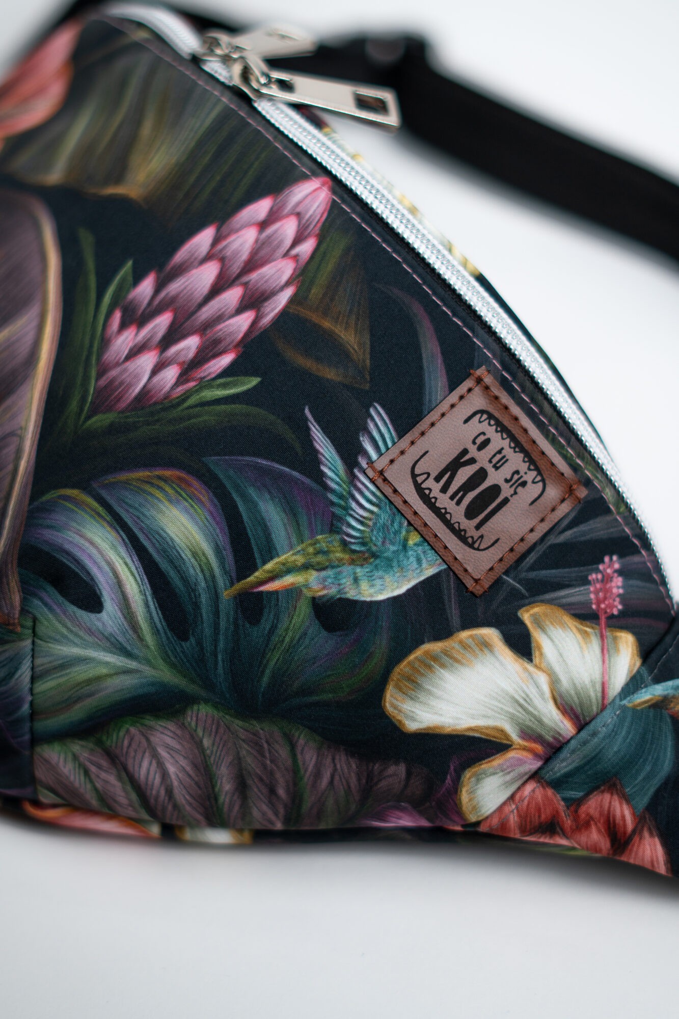 Czarna saszetka nieprzemakalna nerka sportowa w kwiaty TAJEMNICE KWIATÓW