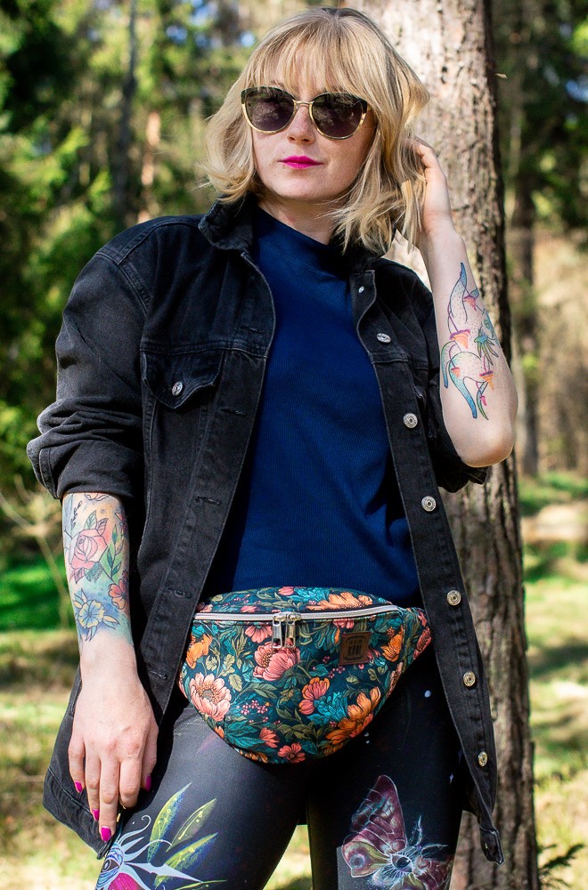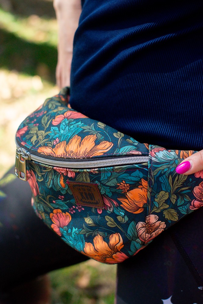 Kwiatowy wzór w odcieniach zieleni, turkusu oraz kwiatów pomarańczowo-różowych przyciąga wzrok i dodaje energii każdej stylizacji. Niezależnie od tego, czy wybierasz się na spacer, jogging, czy na weekendową wycieczkę, nasza nerka biodrowa z pewnością spełni Twoje oczekiwania.