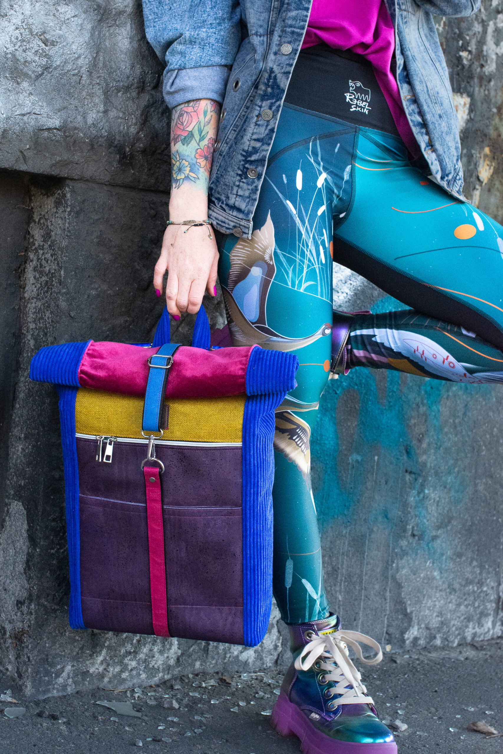 MATERIAŁ: tkaniny tapicerskie, kolorowa tkanina korkowa, bawełniana, podszewka, kolorowe pasy samochodowe