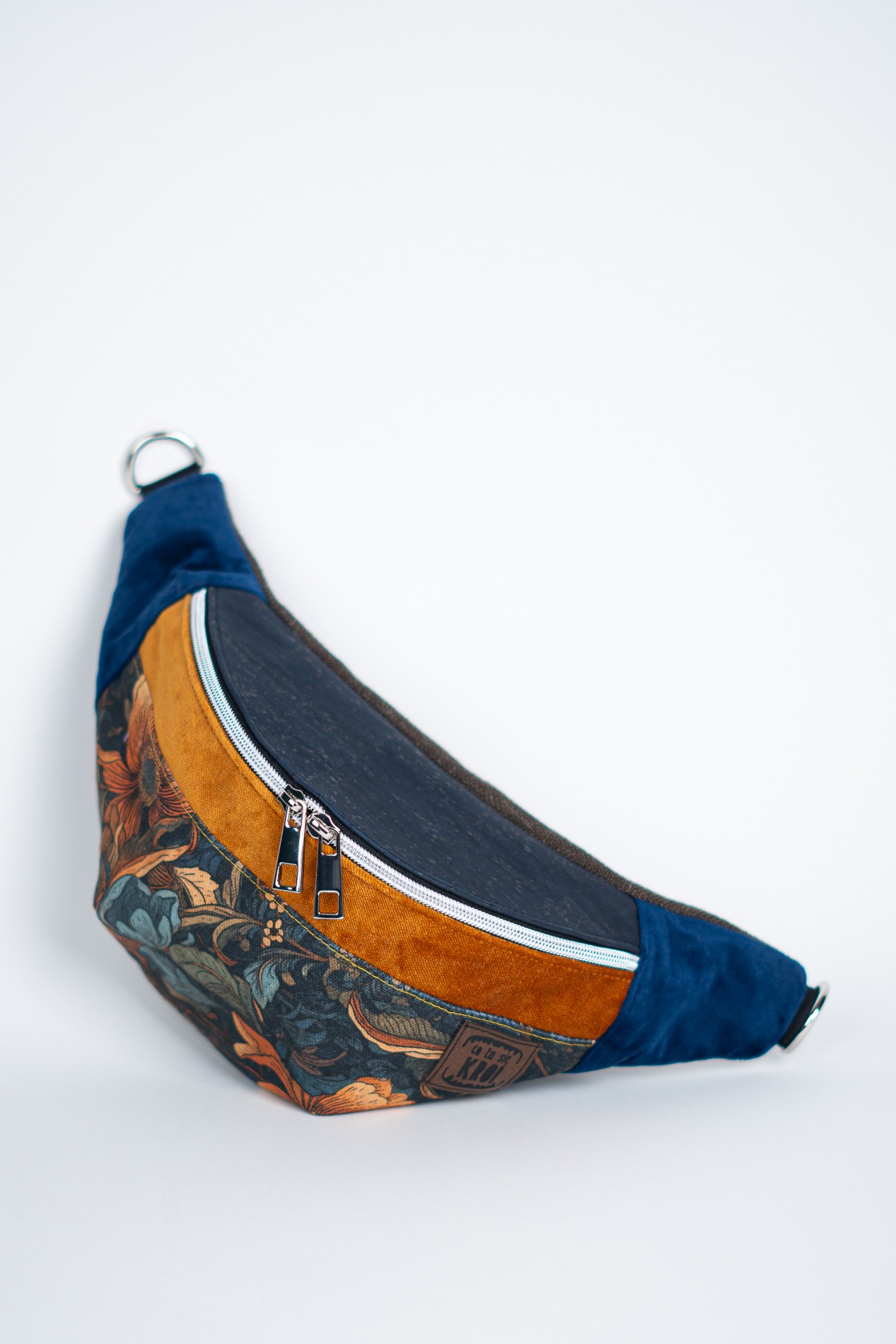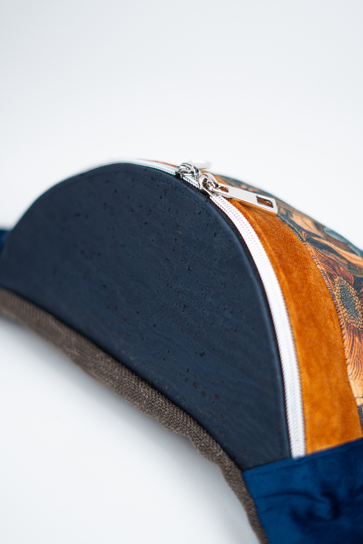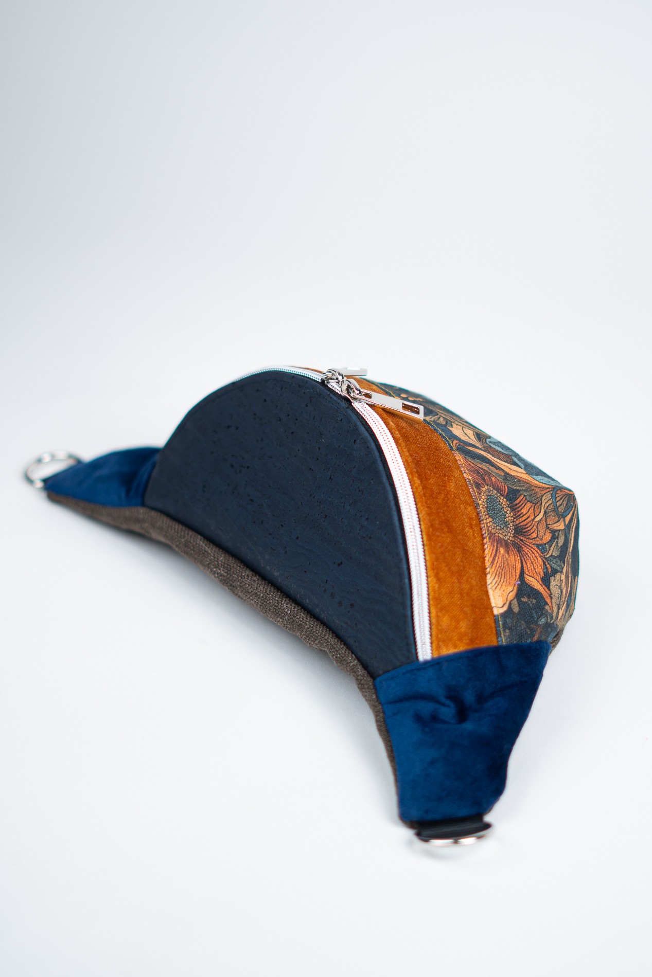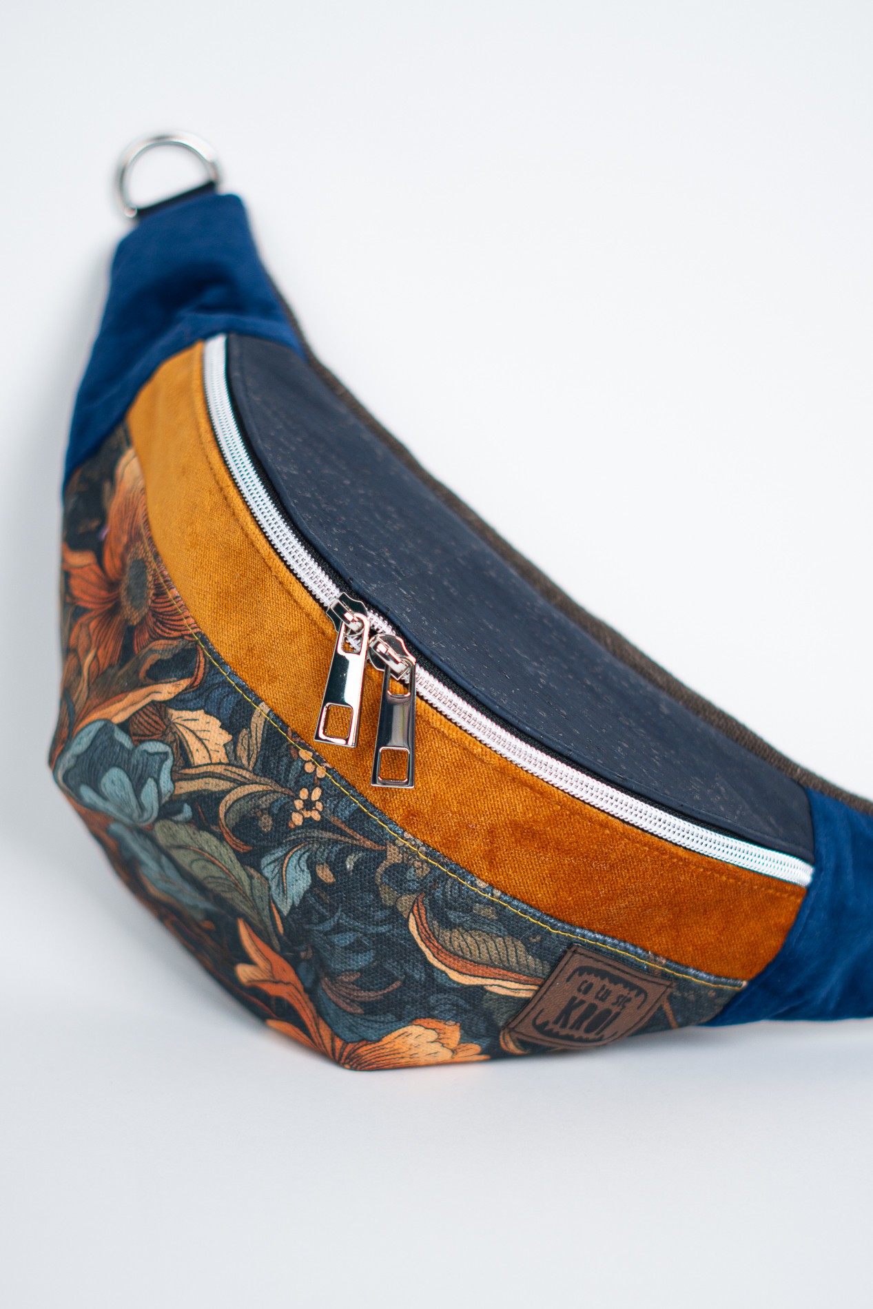 Kiedy elegancja spotyka funkcjonalność, powstaje coś wyjątkowego – jak ta nerka z kolekcji KWIATOWY OBRAZ. Jej nastrojowa paleta barw łączy głęboki granat, ciepły odcień karmelu oraz ciemne, kwiatowe motywy w odcieniach rdzy, szafiru i szarości. Klapka wykonana z grafitowego korka wprowadza nowoczesny, naturalny akcent i sprawia, że całość prezentuje się niezwykle szlachetnie. To dodatek, który subtelnie przyciąga spojrzenia, nie tracąc przy tym nic ze swojej klasy.