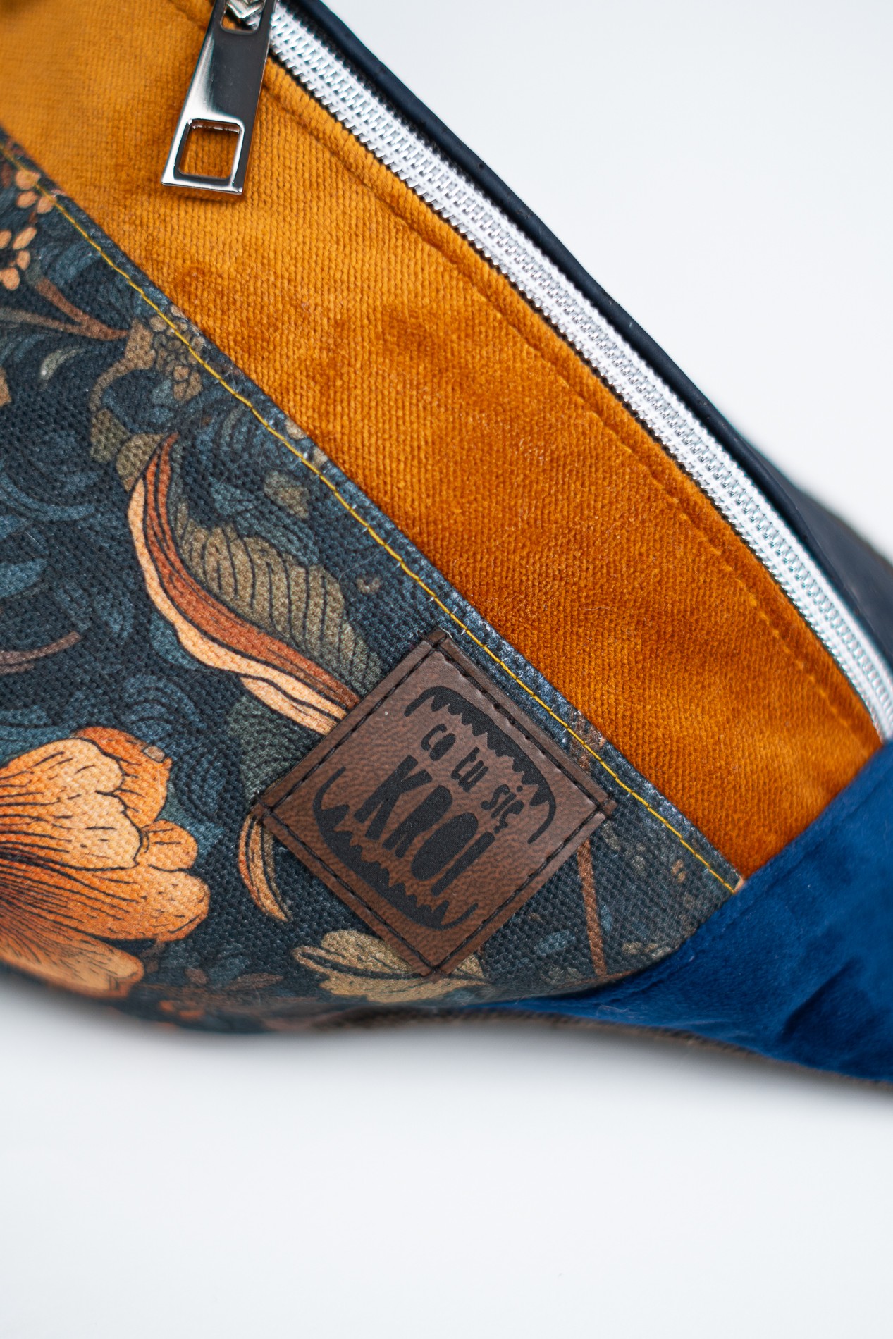 PIELĘGNACJA: Produkt nie jest przeznaczony do prania w pralce. Prosimy o ręczne czyszczenie, aby zachować jego pierwotny stan. Produkt wykonywany jest rękodzielniczo – ułożenie wzoru może różnić się od przedstawionego na zdjęciu. Tyły nerek wykonywane są ze sztywnych tkanin tapicerskich, które aktualnie są dostępne w hurtowni. Mogą się one różnić splotem i kolorem od przedstawionych na zdjęciu. Nie wpływa to w żaden sposób na użyteczność nerki. Nerka posiada kieszonkę na suwak w środku w podszewce, która pomieści telefon. Nerka sprzedawana jest z wygodnym pasem samochodowym z regulacją o długości 100 cm. Jeżeli potrzebujesz dłuższy pas – napisz proszę w uwagach do zamówienia.