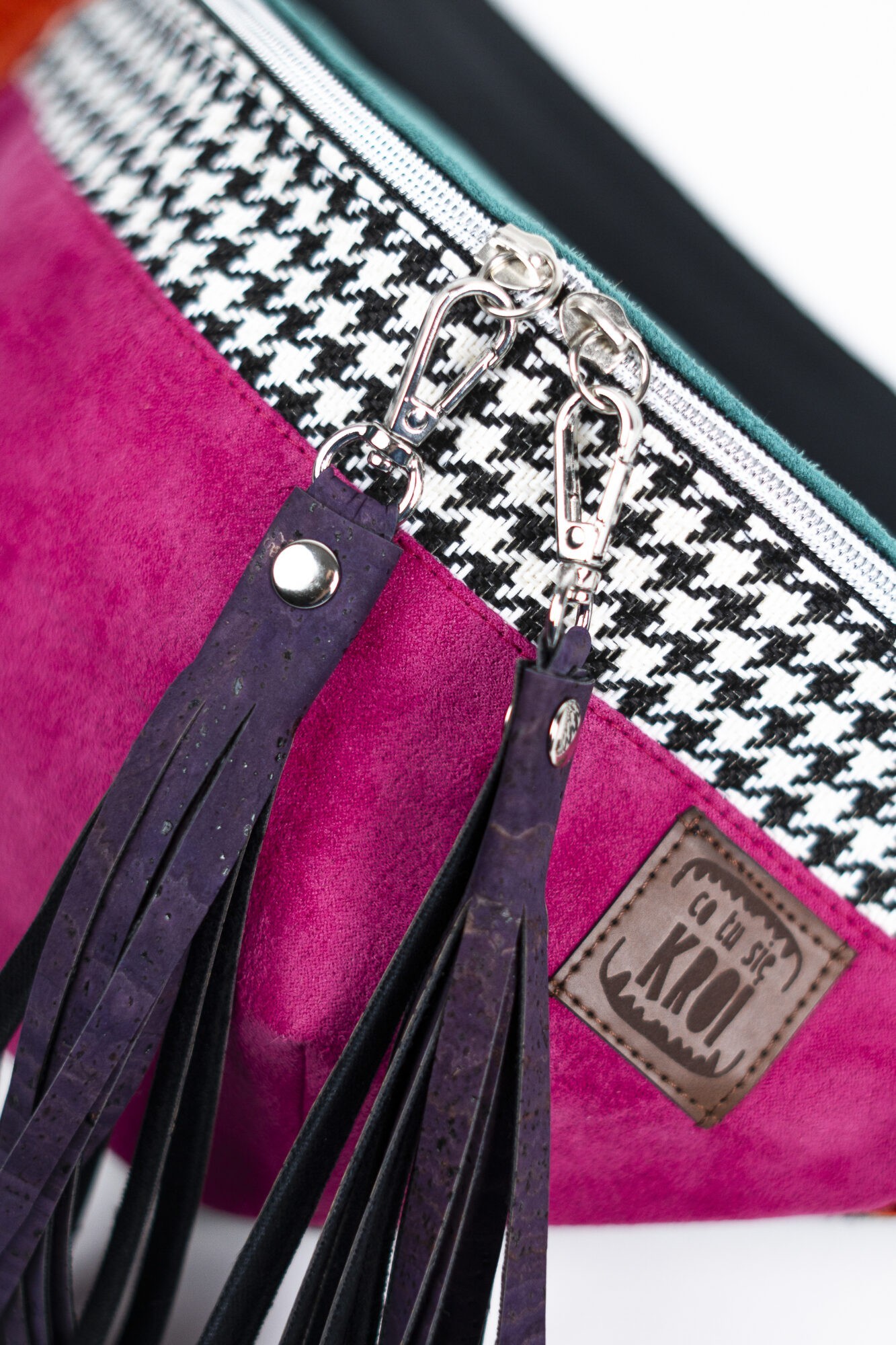 Fuksjowa nerka damska saszetka w pepitkę ENERGIA ŻYCIA