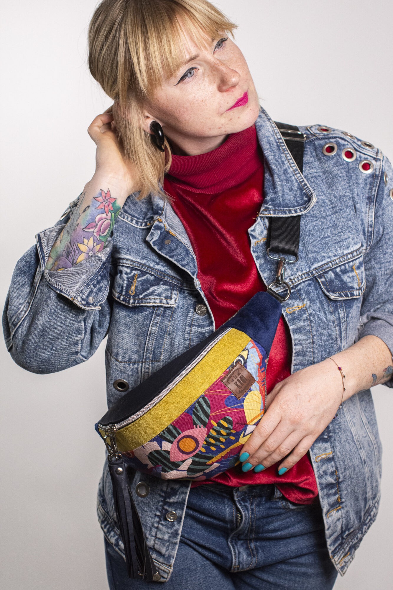 Nerka z kolekcji Magiczne Spojrzenie to wyjątkowe połączenie niepowtarzalnego designu i funkcjonalności, dostępna w trzech olśniewających kolorach: magenta, turkus i ultramaryna, które doskonale podkreślą Twoją indywidualność. Dzięki regulowanemu paskowi, nerka może być noszona na różne sposoby, co czyni ją idealnym akcesorium zarówno na co dzień, jak i na wieczorne wyjścia. Ozdobiona unikalnymi brylokami, ta nerka nie tylko pomieści najważniejsze drobiazgi, ale także doda charakteru każdej stylizacji, będąc prawdziwym dziełem sztuki w Twojej garderobie.