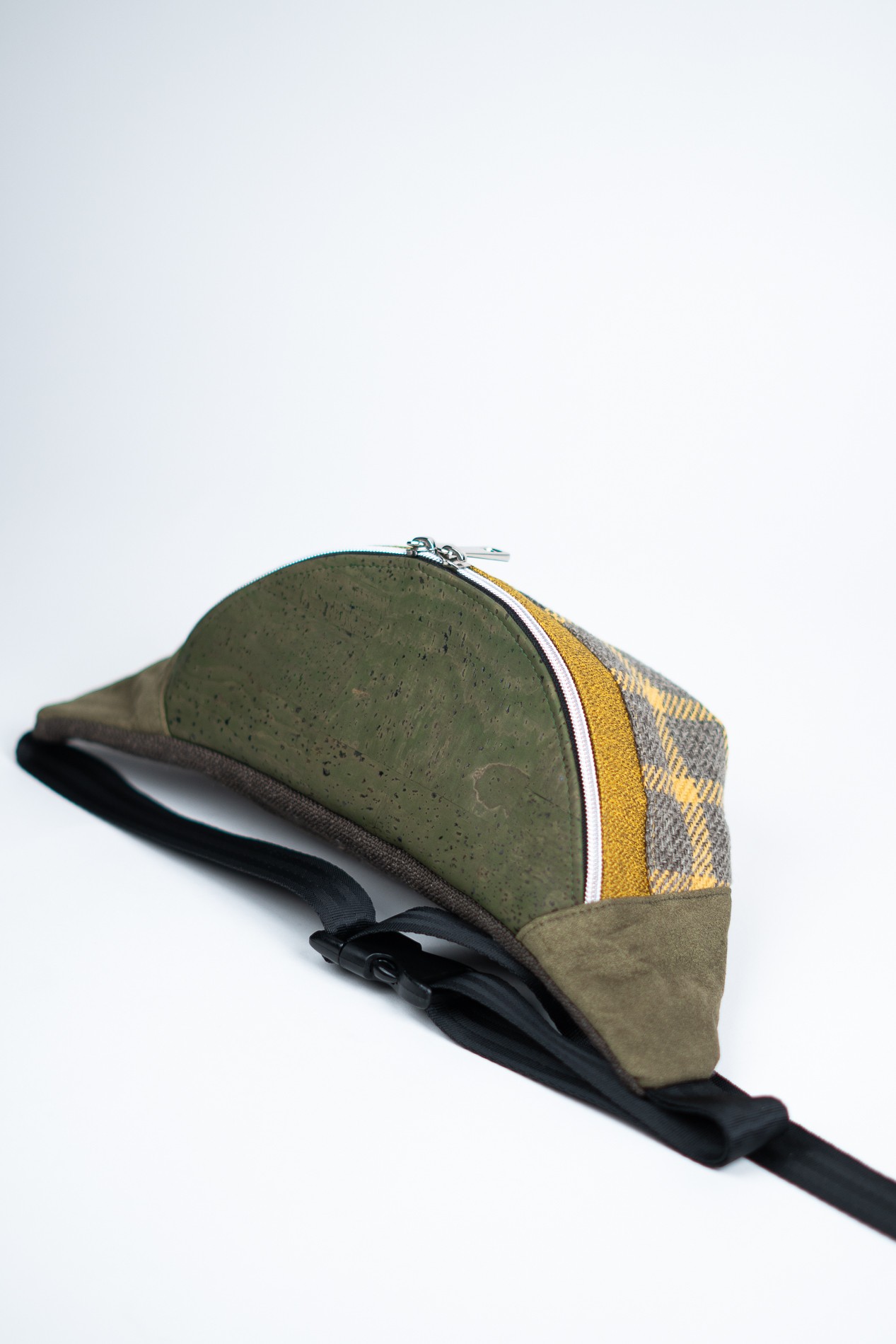 Wyrazista, ale stonowana. Stylowa, a zarazem praktyczna. Ta kolorowa męska nerka to idealne połączenie nowoczesnego designu z codzienną funkcjonalnością. Musztardowo-szara kratka w połączeniu z klapką wykonaną z korka w kolorze khaki nadaje jej niepowtarzalny, surowo-naturalny charakter. To oryginalna nerka męska, która przyciąga uwagę, ale nie krzyczy – doskonała dla tych, którzy cenią indywidualny styl, ale bez przesady.