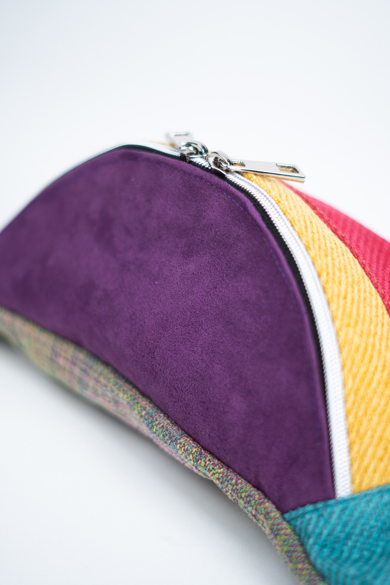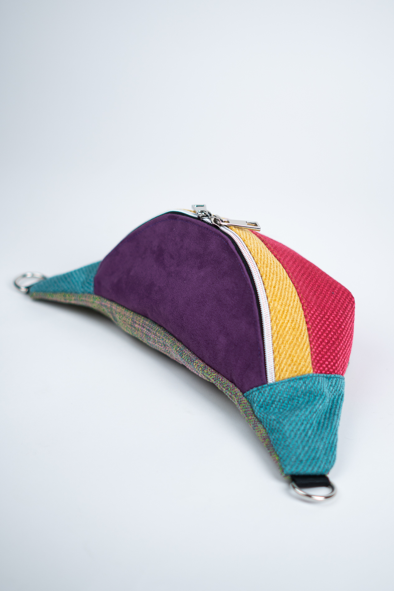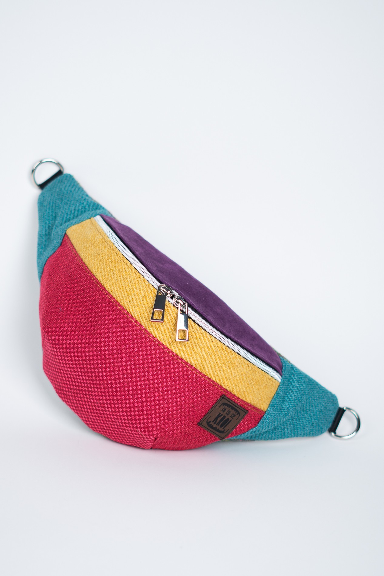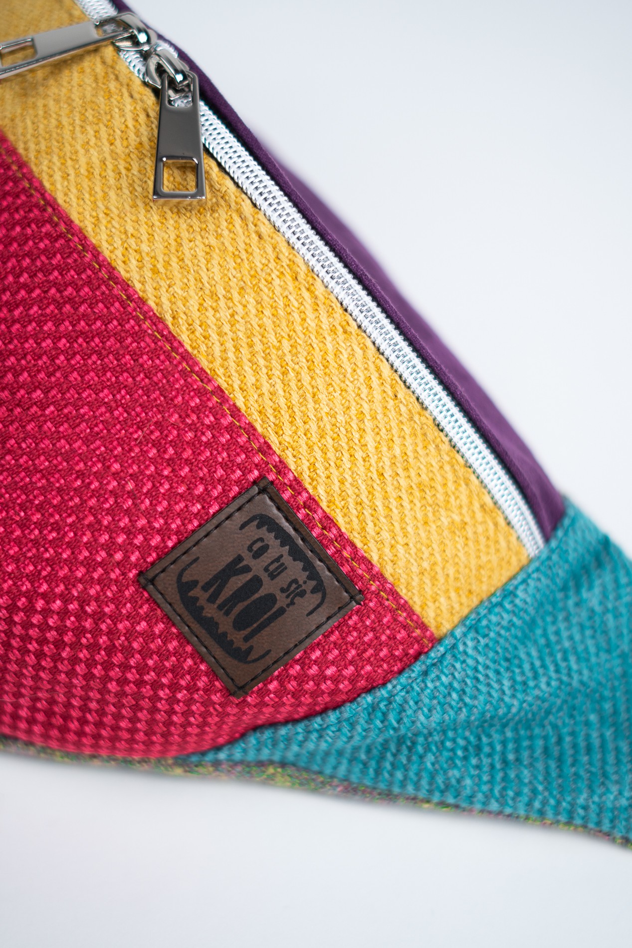 ENERGIA ŻYCIA to kolekcja dla tych, którzy czerpią z codzienności pełnymi garściami – kolor, ruch i radość to jej znaki rozpoznawcze. Ta nerka idealnie oddaje ten klimat. Intensywna czerwień w dolnej części łączy się z musztardowym pasem i głębokim fioletem klapki, tworząc zaskakująco spójną, a zarazem pełną temperamentu całość. Bok nerki w soczystym odcieniu turkusu dodaje świeżości i równoważy całą kompozycję. To nie tylko dodatek – to deklaracja stylu i pozytywnej energii.