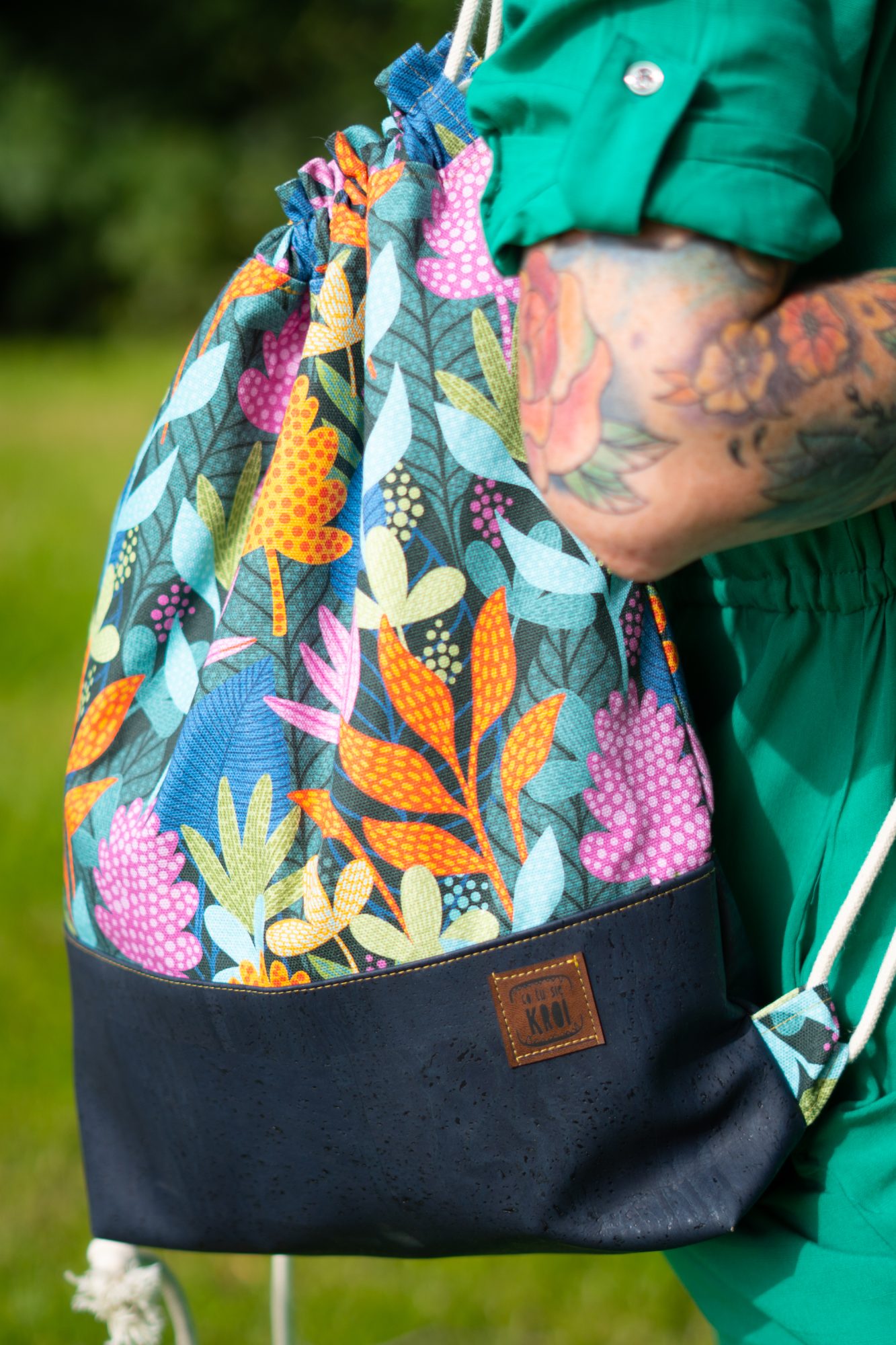 Oto plecak, który wprowadzi kolorową radość do Twojej codziennej garderoby Tańczące Liście Na Wietrze – nasz niezwykły workoplecak w kolorowe kwiaty i liście z tkaniny korkowej w odcieniach granatu. To nie tylko modny dodatek, ale również ekologiczny wybór, którym możesz się pochwalić. Workoplecak wykonany jest z tkaniny korkowej, która nie tylko jest lekka i trwała, ale także nieprzemakalna, dzięki czemu bez problemu możesz zabrać go na plażę czy na spacer miejski. Jego wygodny worekowy kształt sprawia, że mieści wszystkie niezbędne rzeczy, a jednocześnie jest łatwy w noszeniu. Idealny na lato i nie tylko – nasz plecak miejski zachwyca nietuzinkowym wzornictwem, które od razu przyciąga uwagę. Doskonały wybór dla każdej kobiety ceniącej sobie styl, wygodę i ekologiczne podejście do modowych trendów. Nie czekaj dłużej! Dodaj kolor i funkcjonalność do swojej kolekcji z naszym unikalnym workoplecakiem. Idealny na prezent dla bliskiej osoby lub jako odświeżający akcent dla Twojej własnej garderoby. Kup teraz i ciesz się każdym dniem z naszym lekkim, kolorowym workoplecakiem!