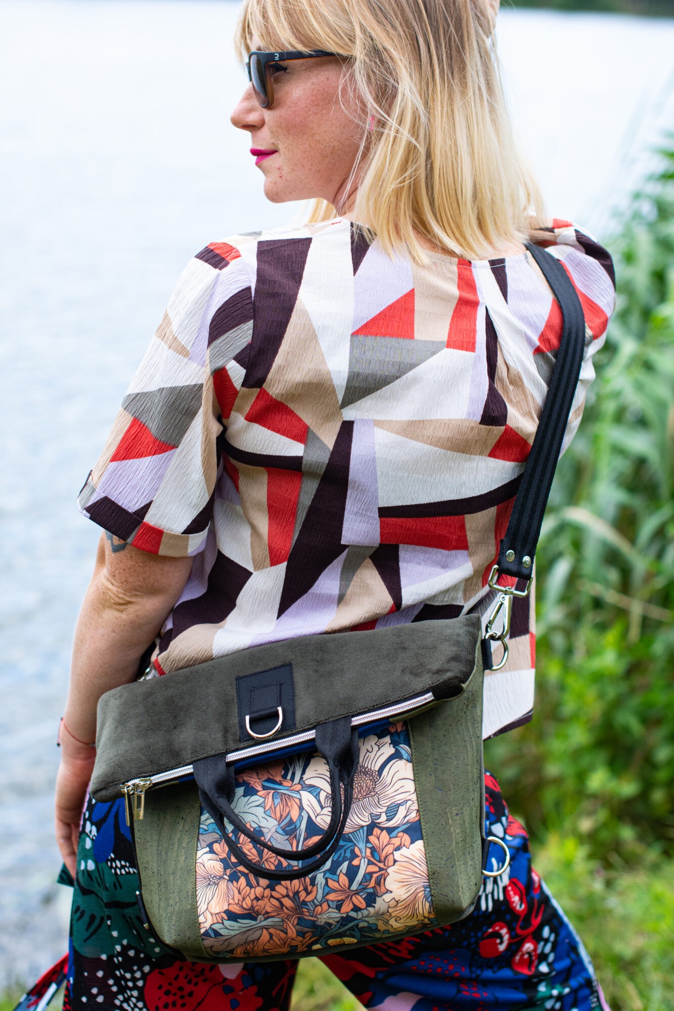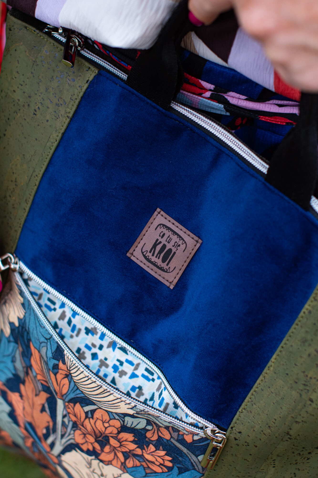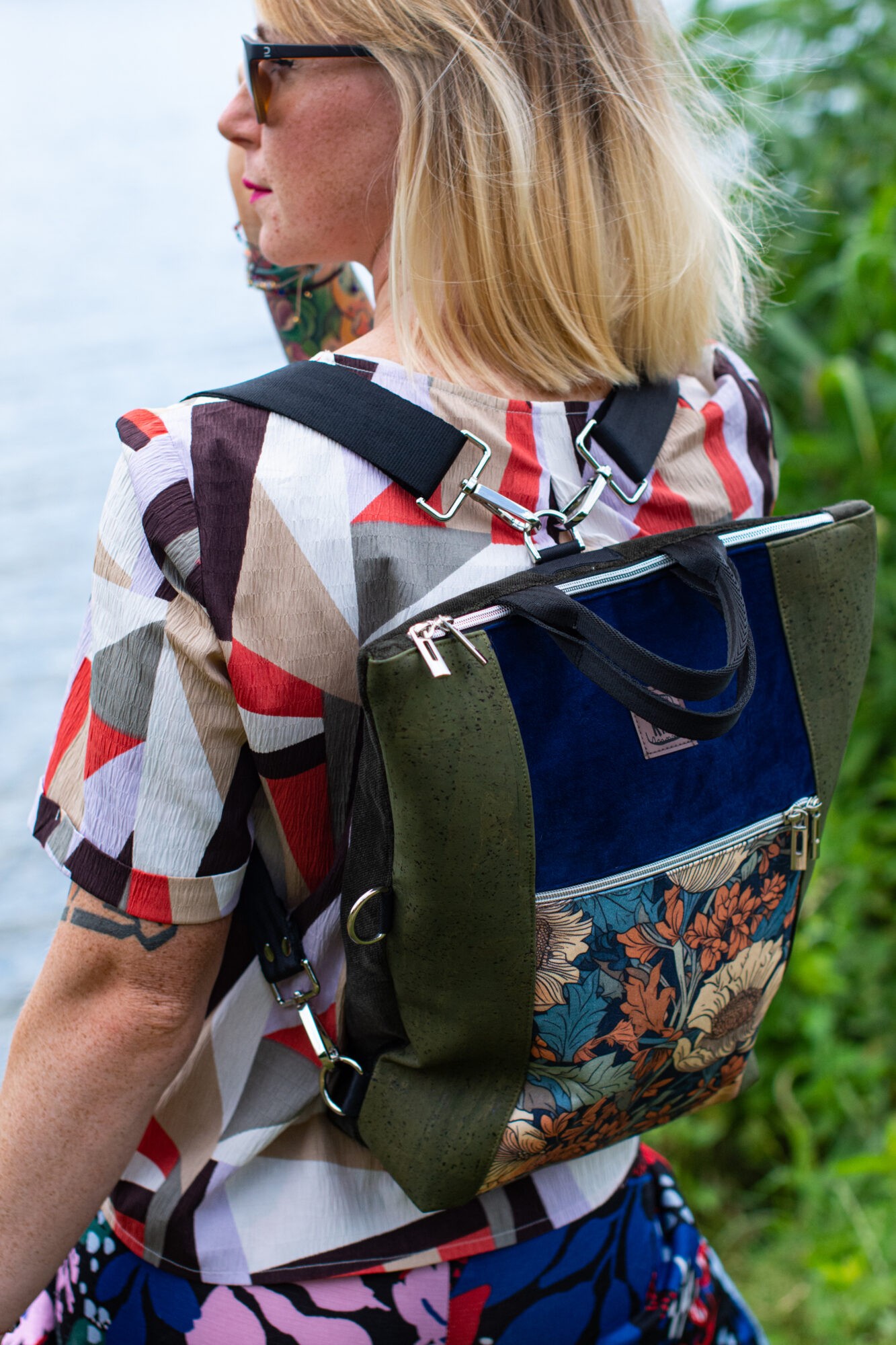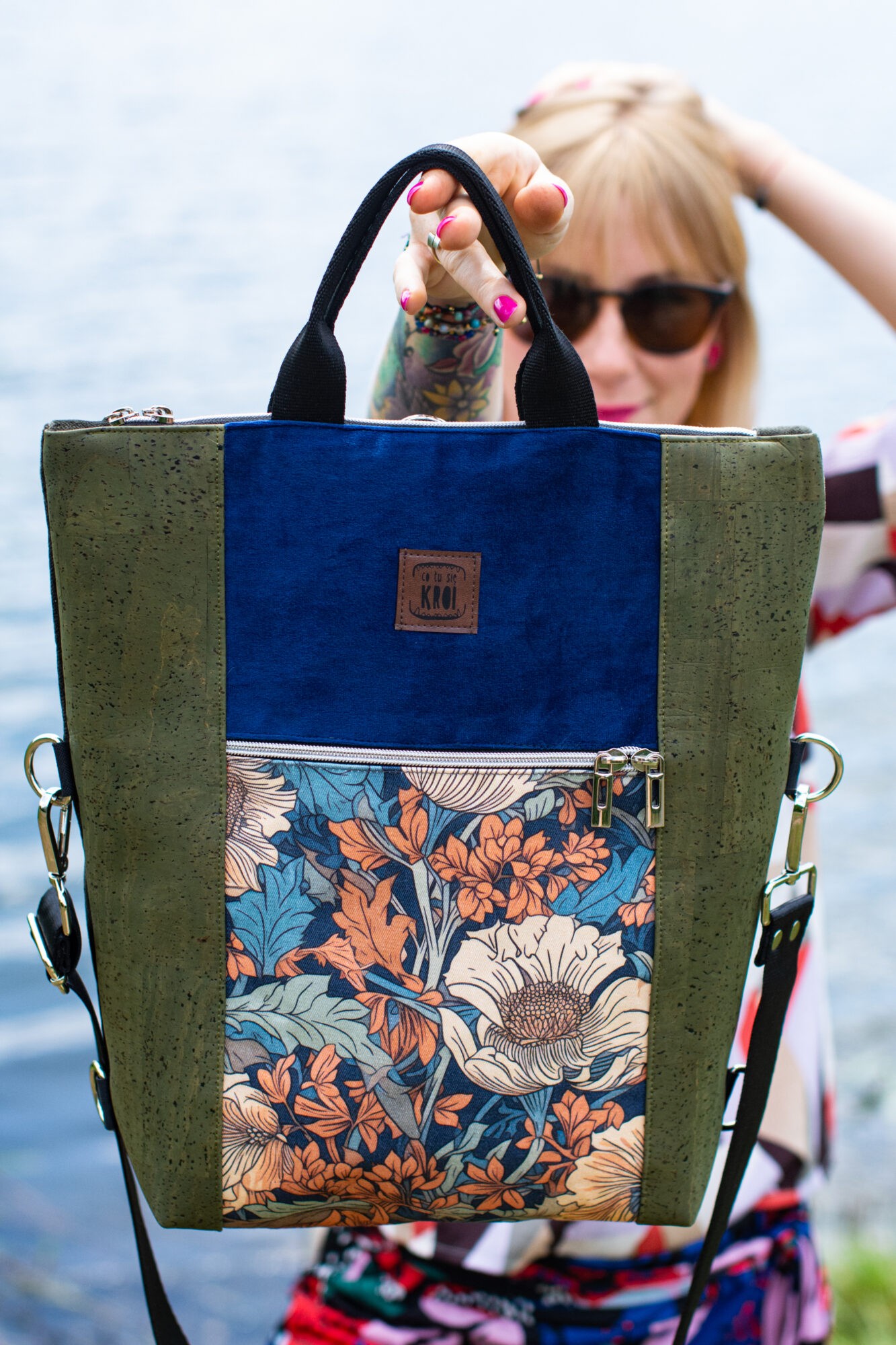 MATERIAŁ: tkaniny tapicerskie, kolorowa tkanina korkowa, drukowana gabardyna bawełniana, podszewka