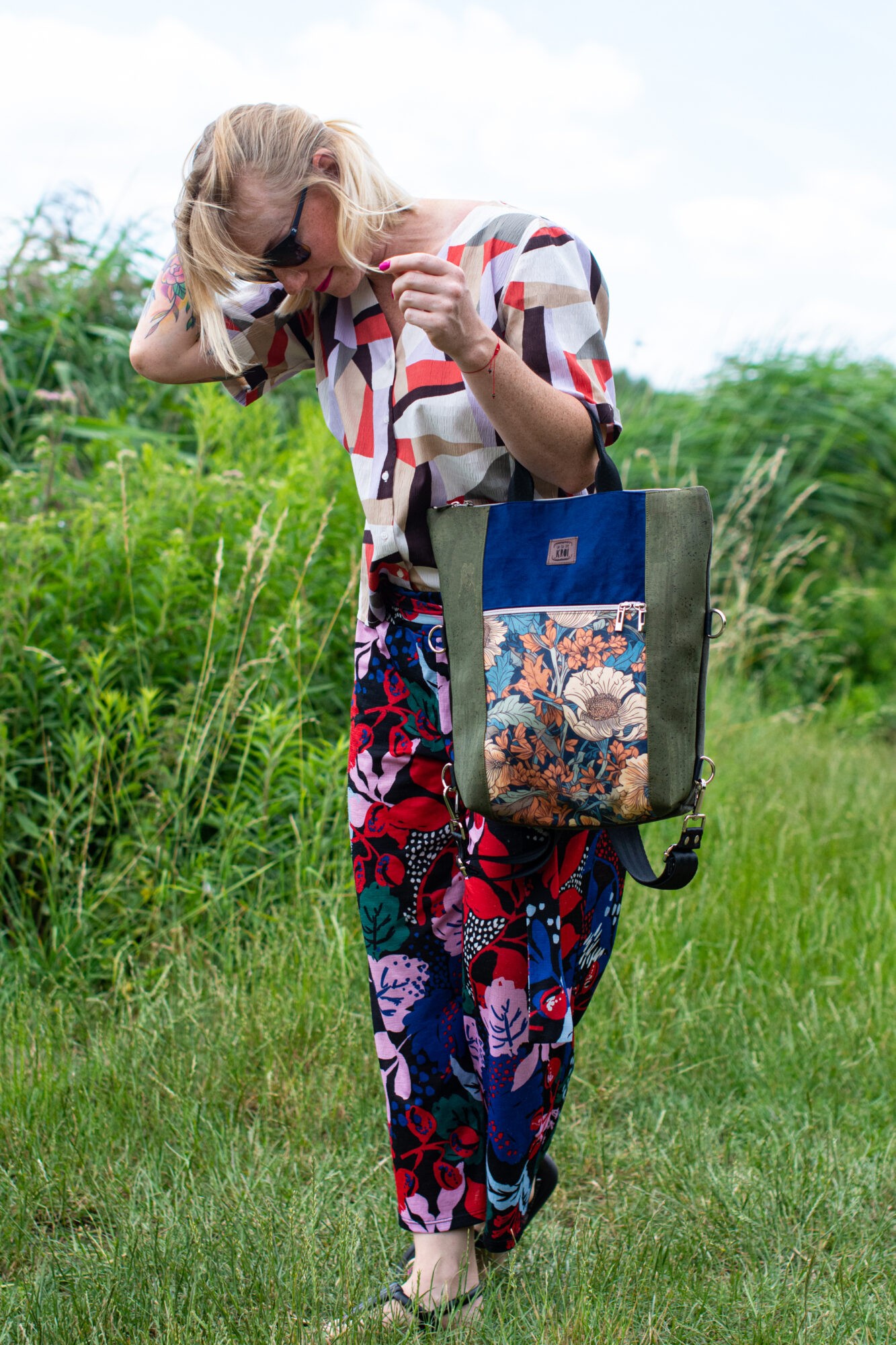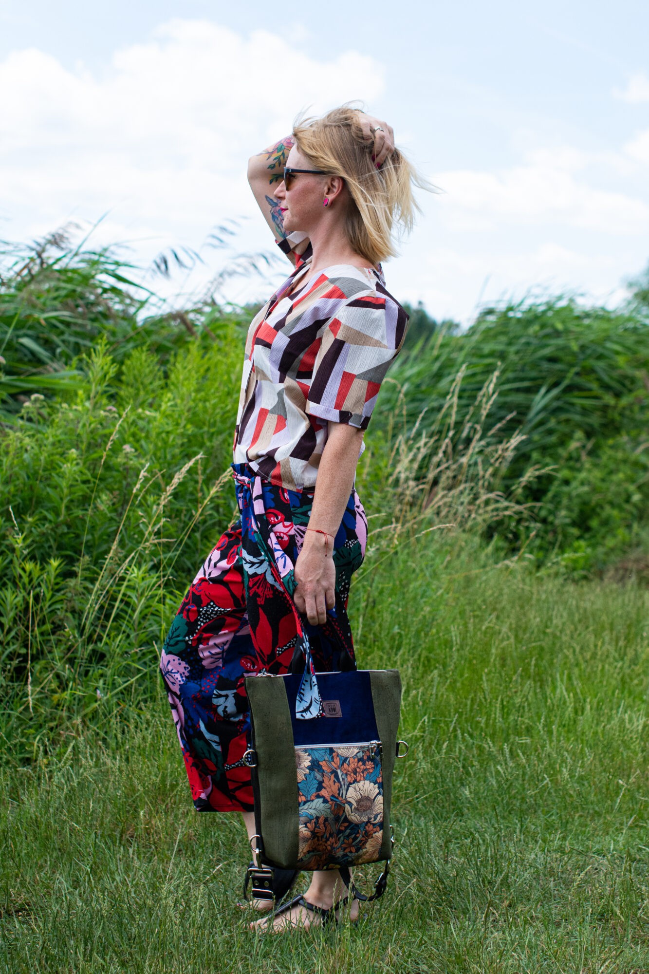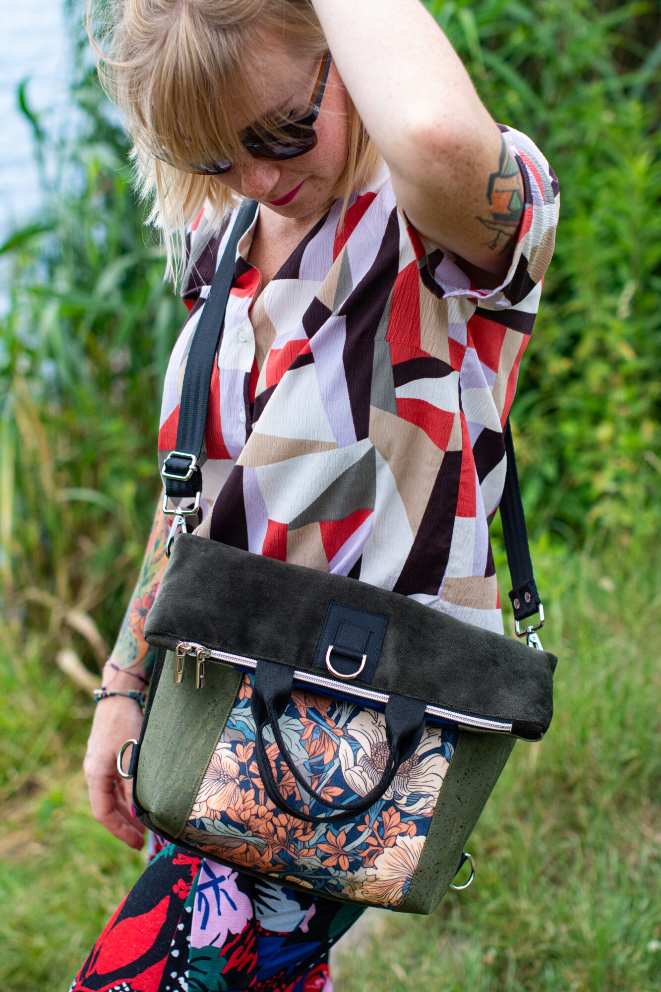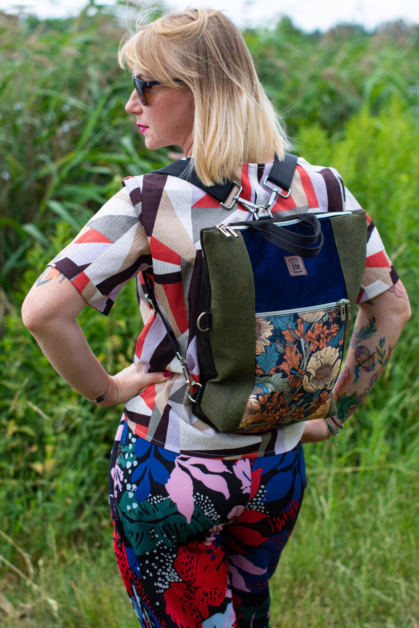 MATERIAŁ: tkaniny tapicerskie, kolorowa tkanina korkowa, drukowana gabardyna bawełniana, podszewka