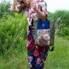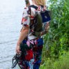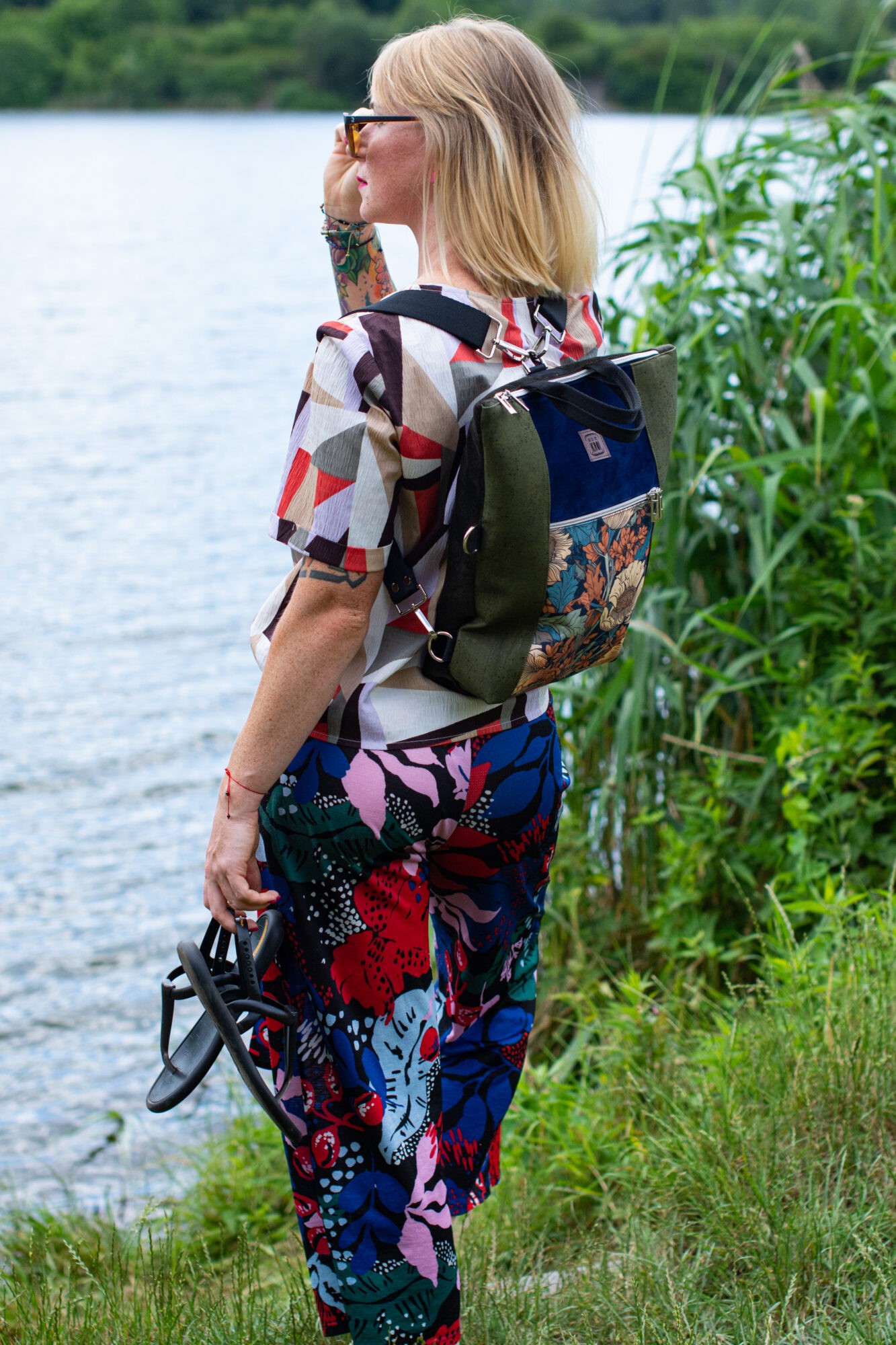 Produkt wykonywany jest rękodzielniczo – ułożenie wzoru może różnić się od przedstawionego na zdjęciu. W podszewce znajdują się trzy kieszenie – w tym jedna większa na suwak. Na przodzie plecaka jest jedna kieszonka na suwak i dwie tzw. wsówki,