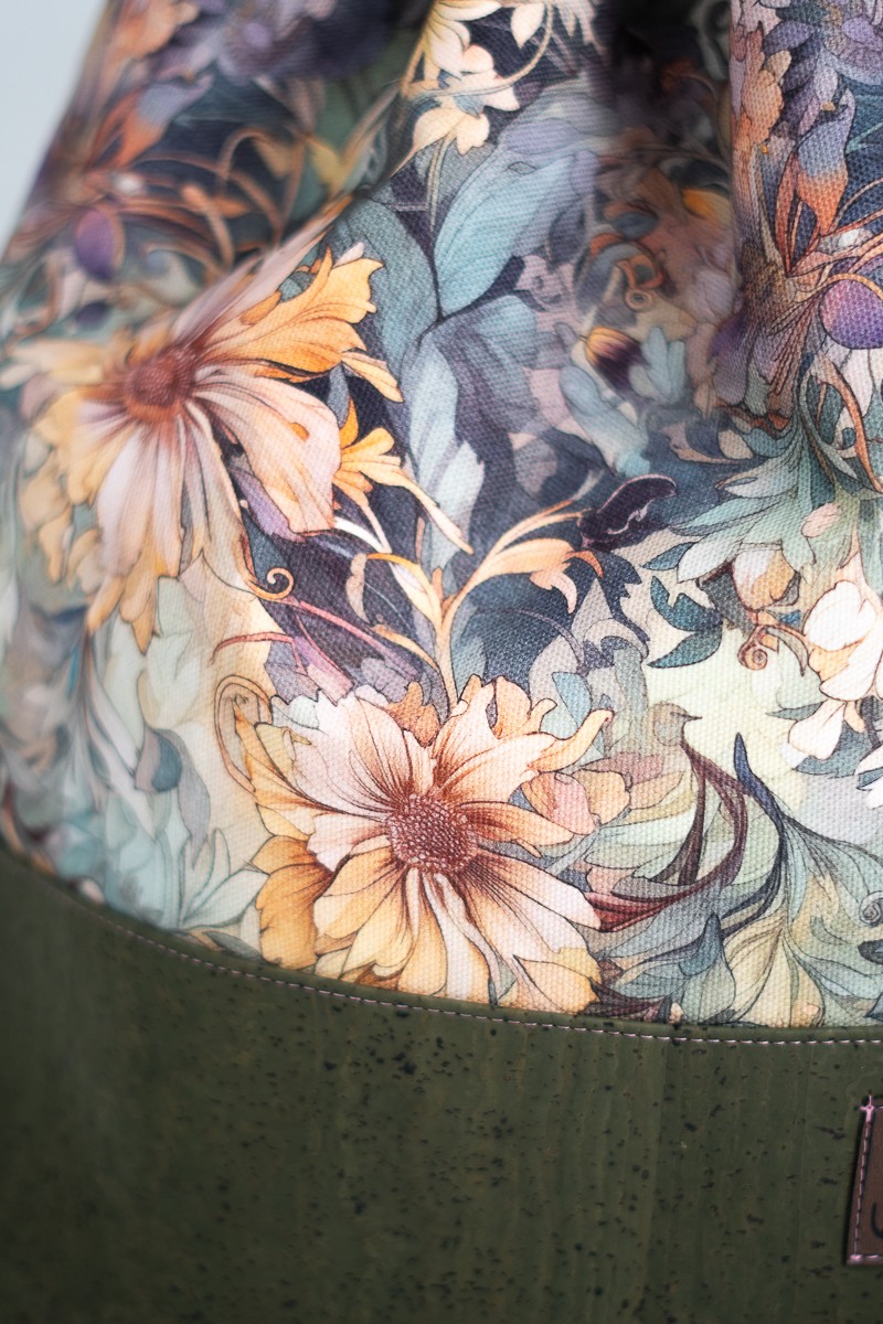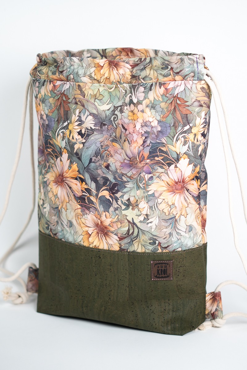 Szukasz dodatku, który połączy kobiecy styl z wygodą i funkcjonalnością? Nasz kolorowy plecak damski „Pastelowy Kwiat” to idealne rozwiązanie na co dzień – lekki, praktyczny i zachwycający wyglądem! Wzór kwiatów w pastelowych odcieniach różu, fioletu, żółci i turkusu wprowadza nutę świeżości i delikatności do każdej stylizacji. Dół plecaka wykonany został z wysokiej jakości korka w eleganckim kolorze oliwki, co nadaje całości naturalny, a zarazem nowoczesny charakter.