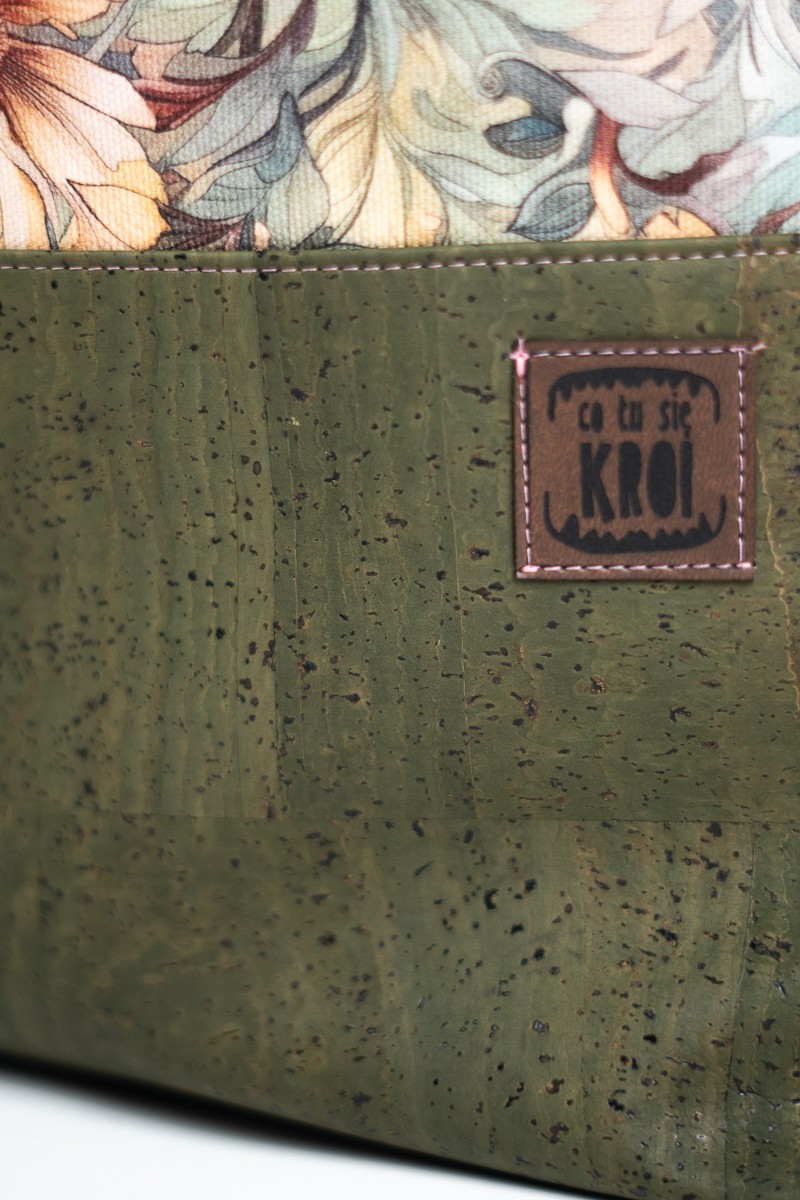 MATERIAŁ: drukowana gabardyna, korek, podszewka