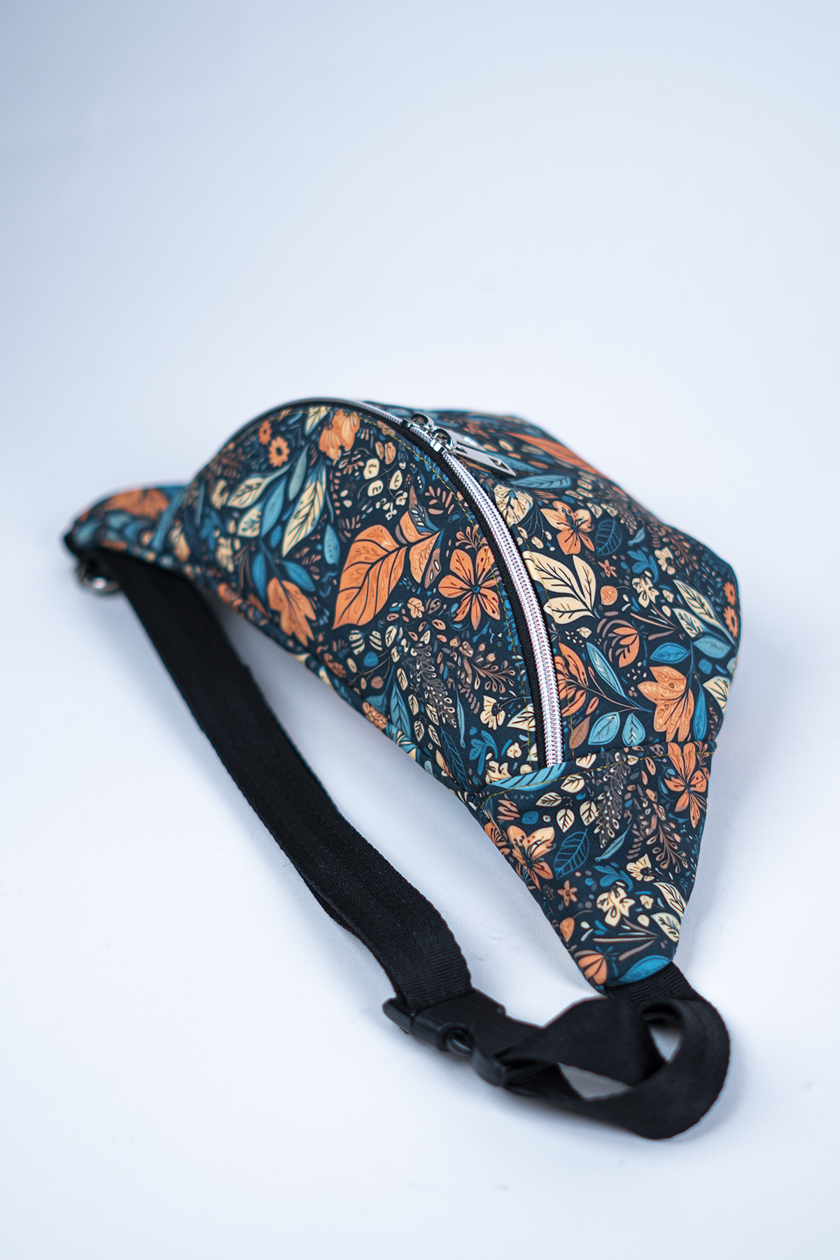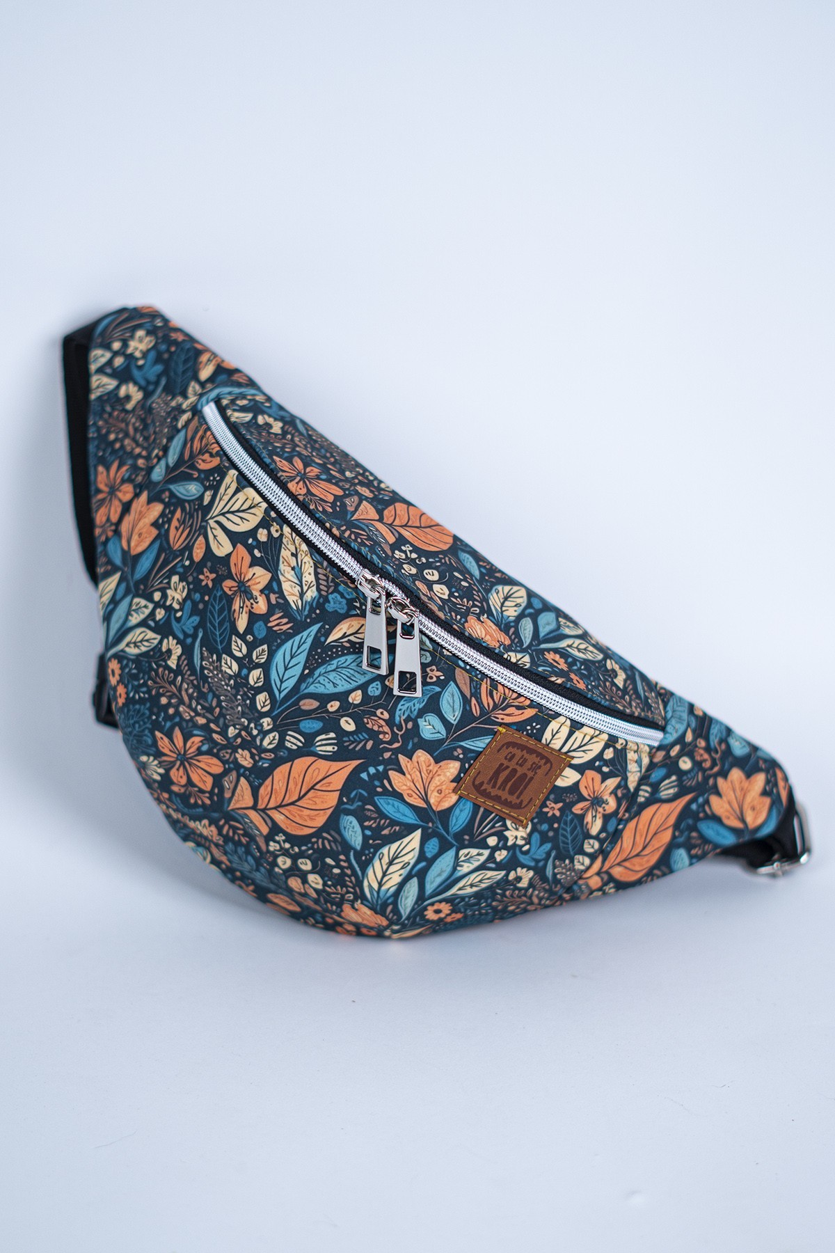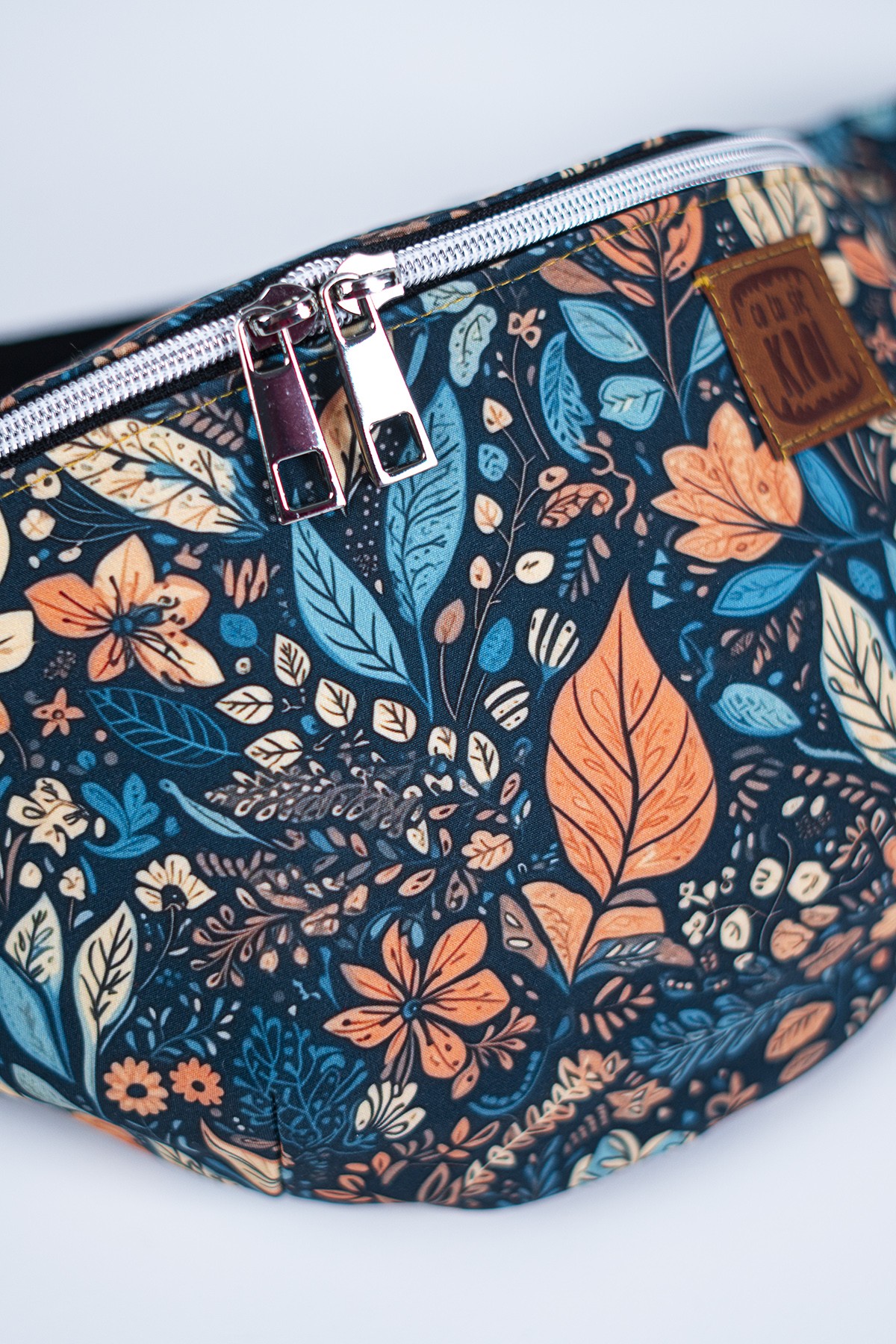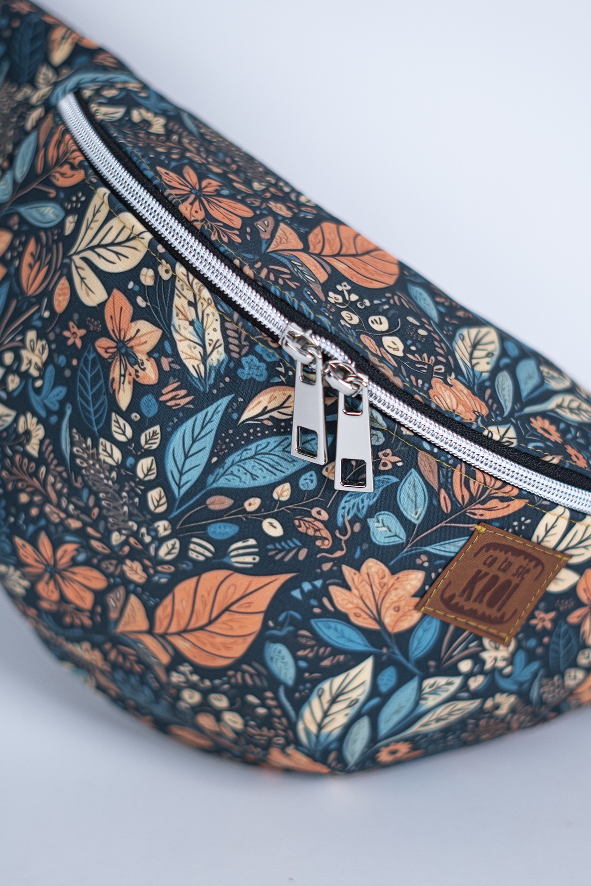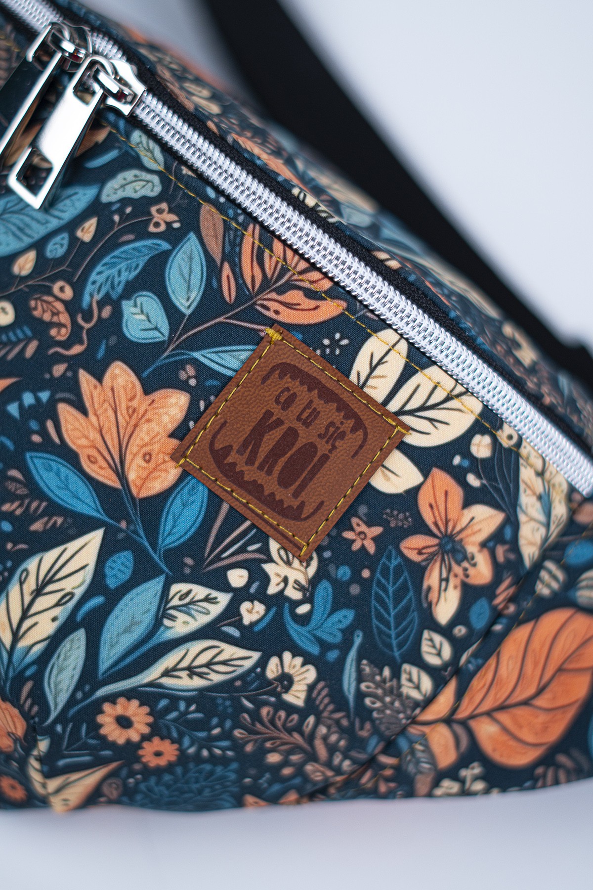 Materiał softshell charakteryzuje się nie tylko wyjątkową odpornością na wodę, ale także wysoką oddychalnością, co sprawia, że nerka jest wygodna w noszeniu przez długi czas. Wzór „Jesienny Liść” przyciąga wzrok ciepłymi, stonowanymi kolorami, które doskonale oddają urok złotej jesieni. Liście w odcieniach brązu, pomarańczy i czerwieni tworzą harmonijną kompozycję, która doda charakteru każdej stylizacji.