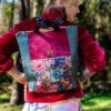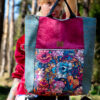 Turkusowa torebka damska w kwiaty kolorowy plecak miejski do pracy RÓŻANA AURA