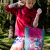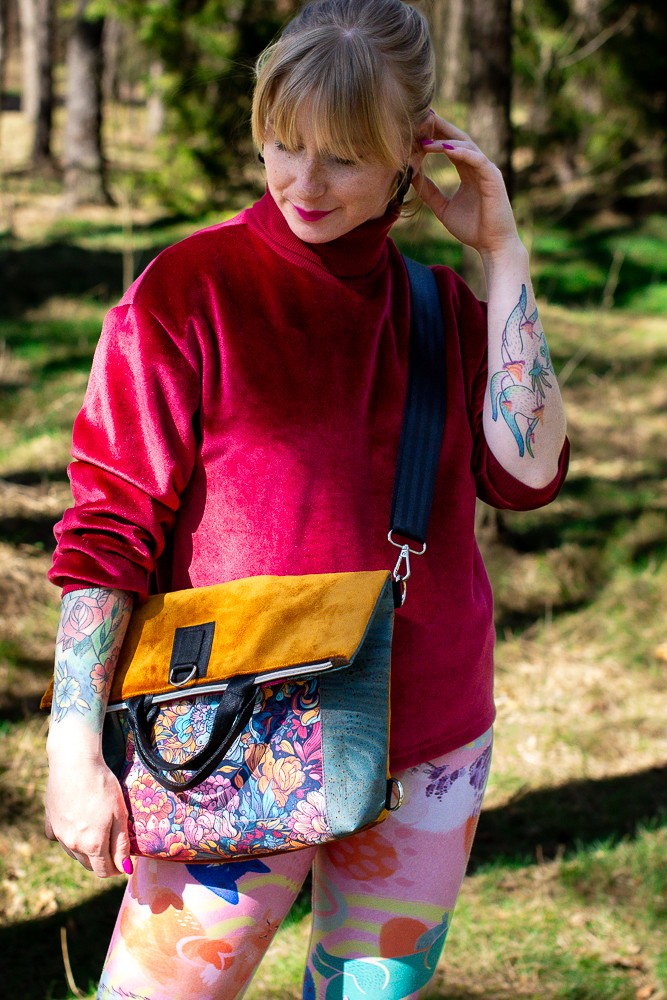 MATERIAŁ: tkaniny tapicerskie, kolorowa tkanina korkowa, drukowana gabardyna bawełniana, podszewka