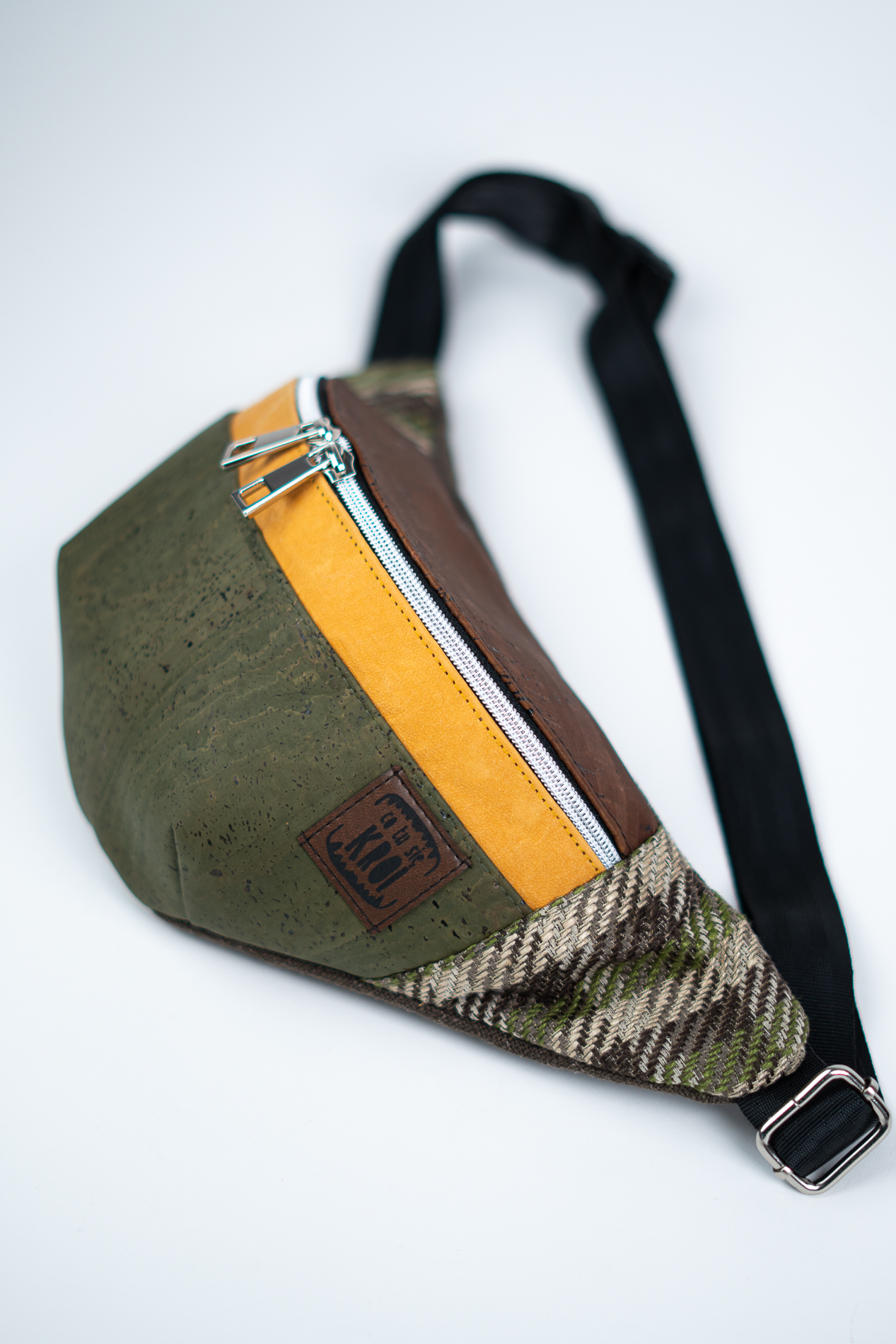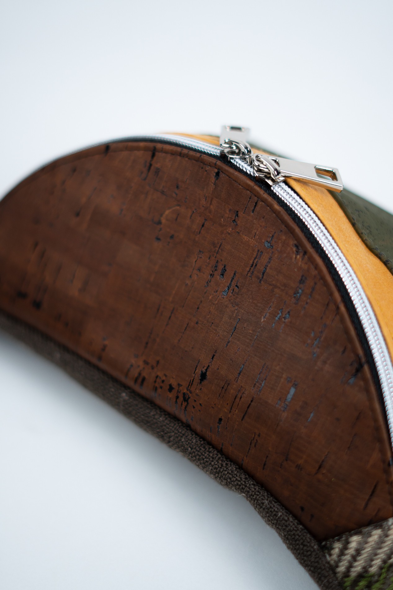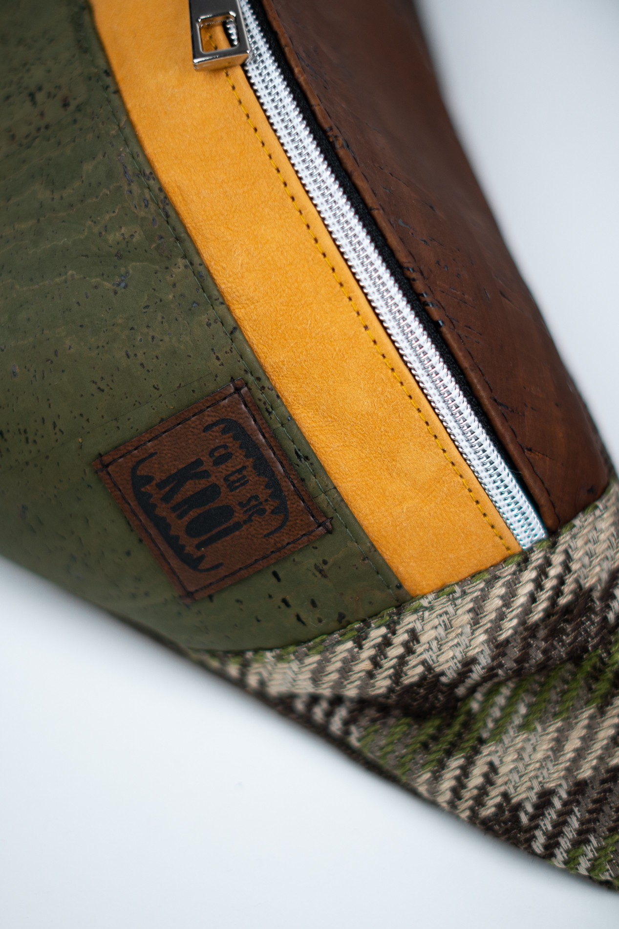Szukasz dodatku, który połączy funkcjonalność z wyjątkowym wyglądem? Ta męska nerka to coś więcej niż praktyczna saszetka – to manifest stylu inspirowanego naturą. Uszyta z wegańskiej tkaniny korkowej w głębokim odcieniu oliwkowej zieleni i wykończona ciepłym brązem oraz musztardową lamówką, przyciąga spojrzenia, ale zachowuje stonowany charakter. Całość dopełniają elementy z materiału przypominającego klasyczny tweed – to ukłon w stronę ponadczasowej męskiej elegancji.