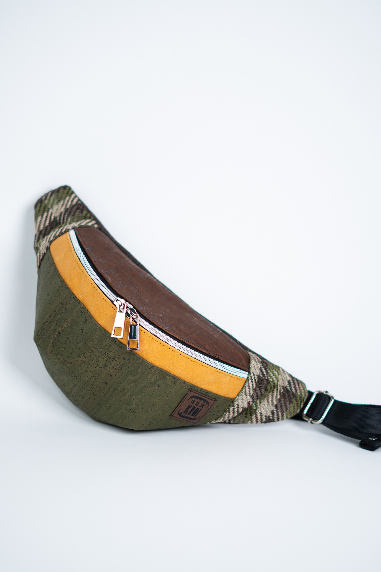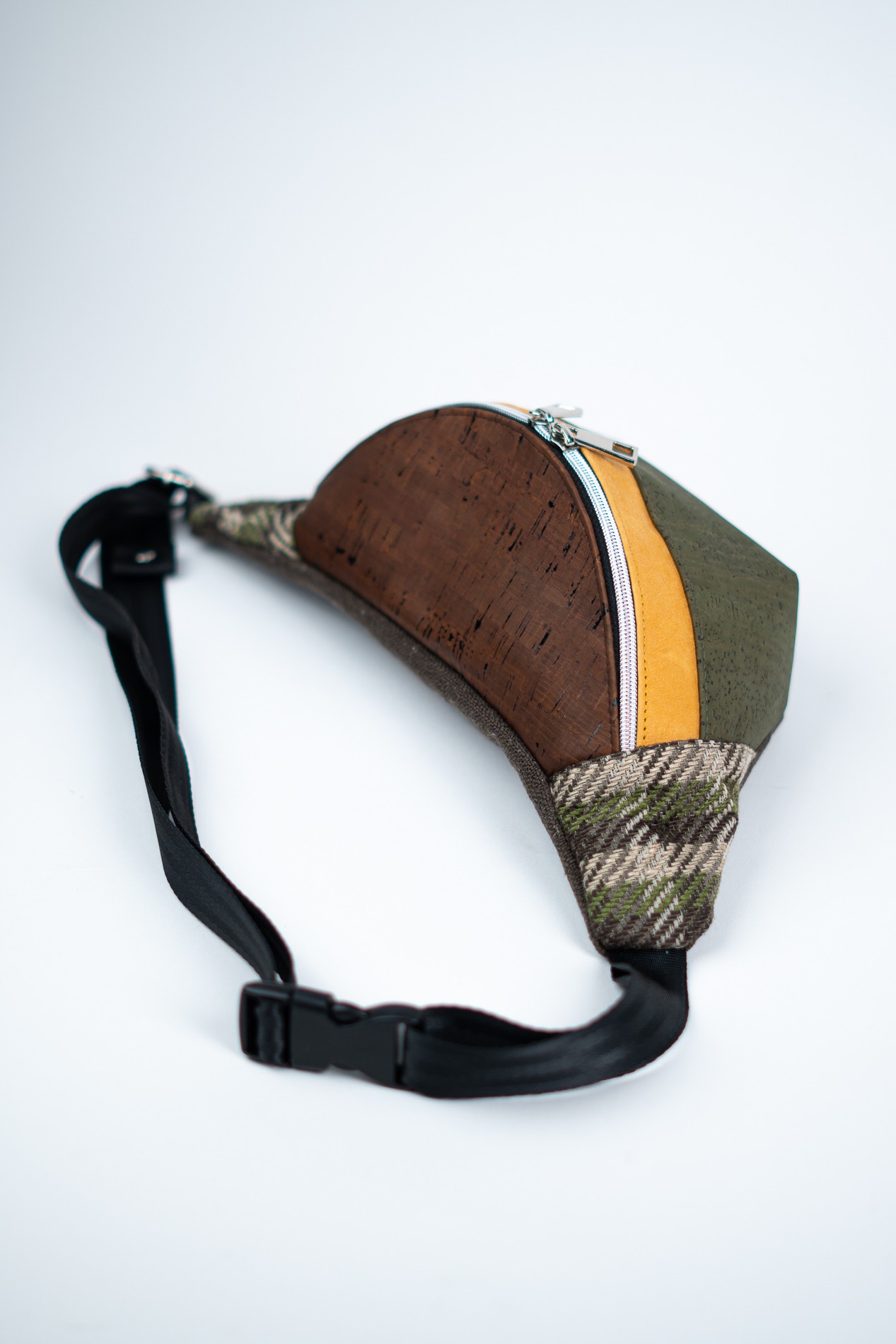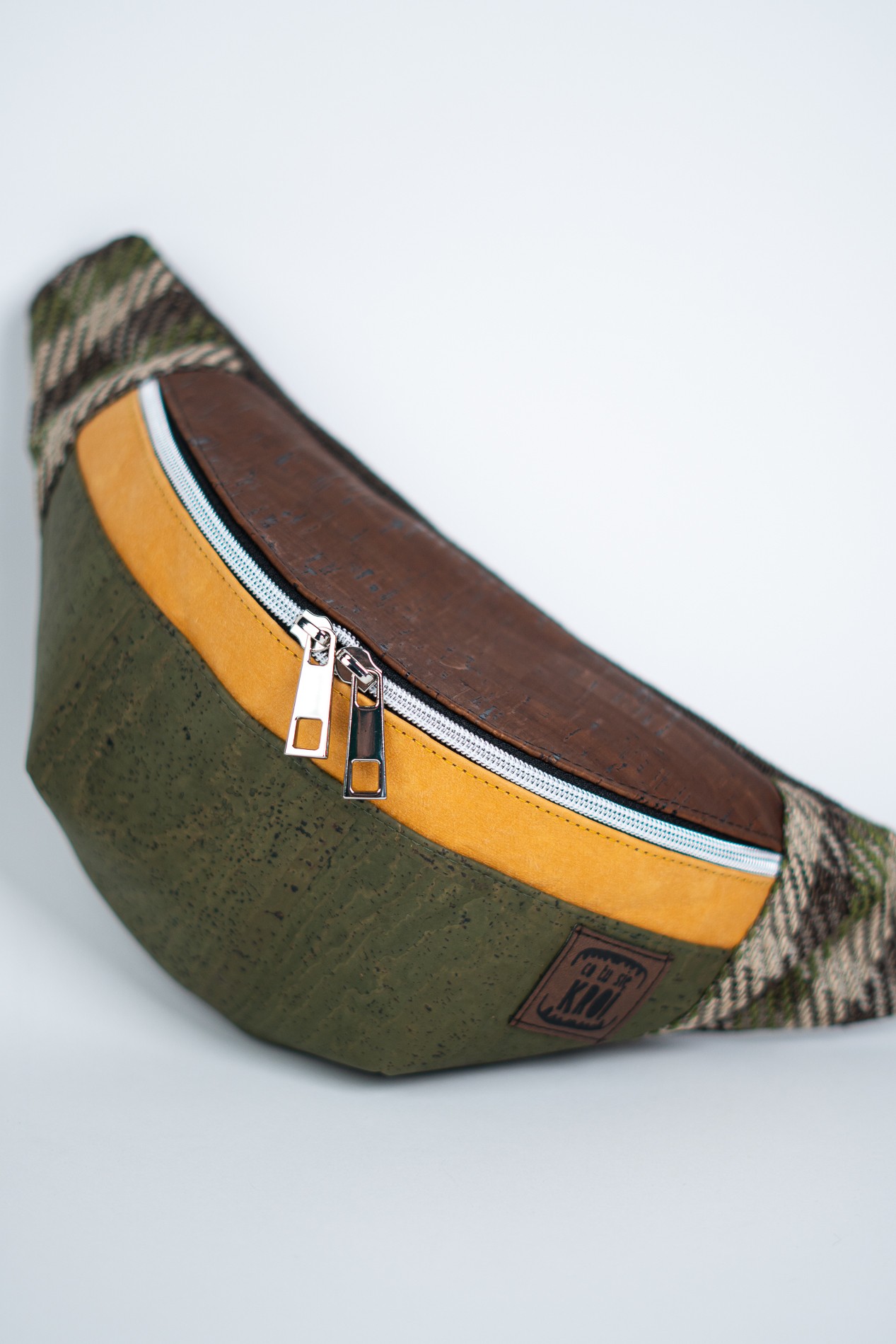 Szukasz dodatku, który połączy funkcjonalność z wyjątkowym wyglądem? Ta męska nerka to coś więcej niż praktyczna saszetka – to manifest stylu inspirowanego naturą. Uszyta z wegańskiej tkaniny korkowej w głębokim odcieniu oliwkowej zieleni i wykończona ciepłym brązem oraz musztardową lamówką, przyciąga spojrzenia, ale zachowuje stonowany charakter. Całość dopełniają elementy z materiału przypominającego klasyczny tweed – to ukłon w stronę ponadczasowej męskiej elegancji.