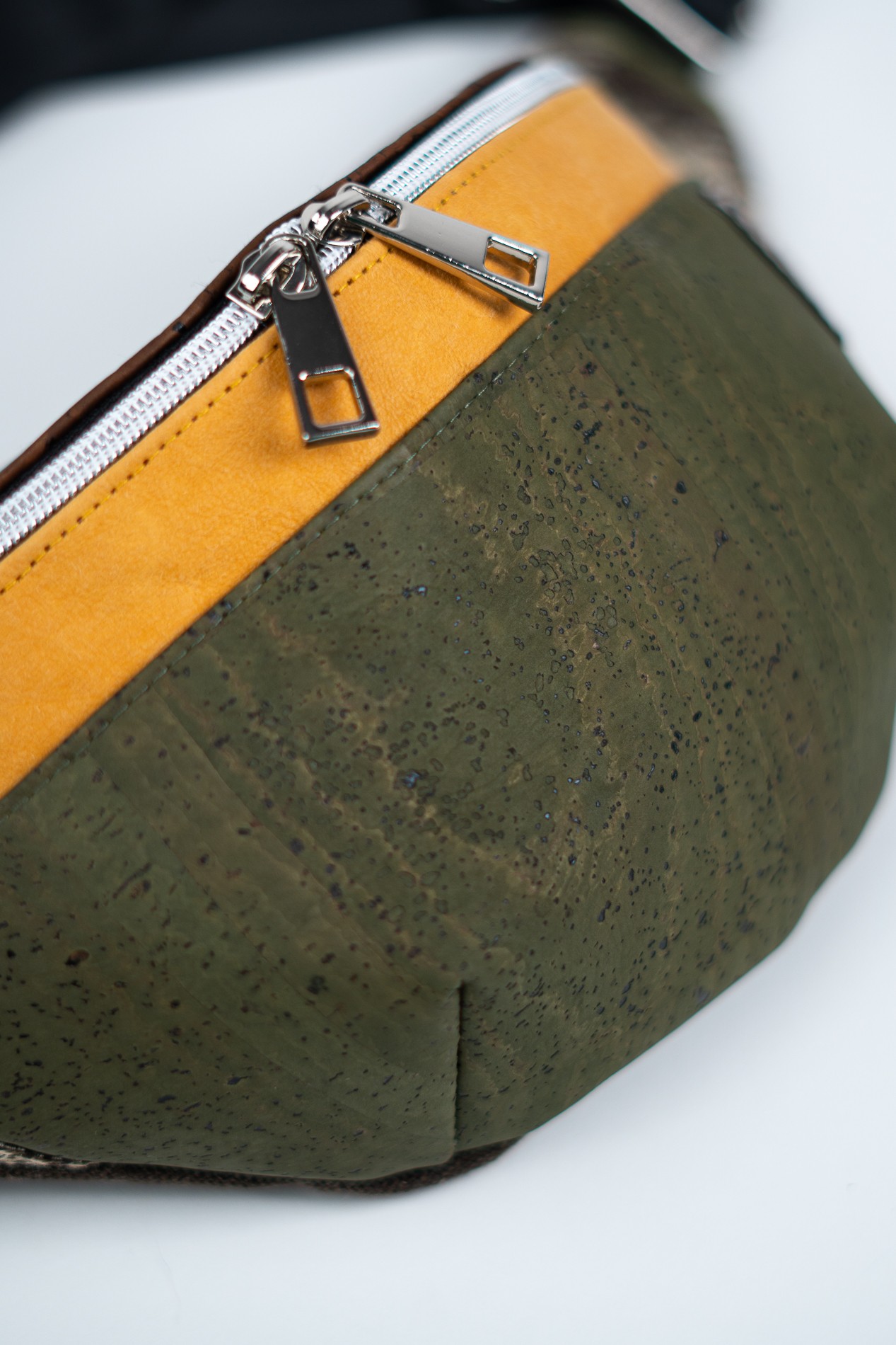 Zielona khaki męska nerka saszetka z korka unisex ODCIENIE ZIEMI