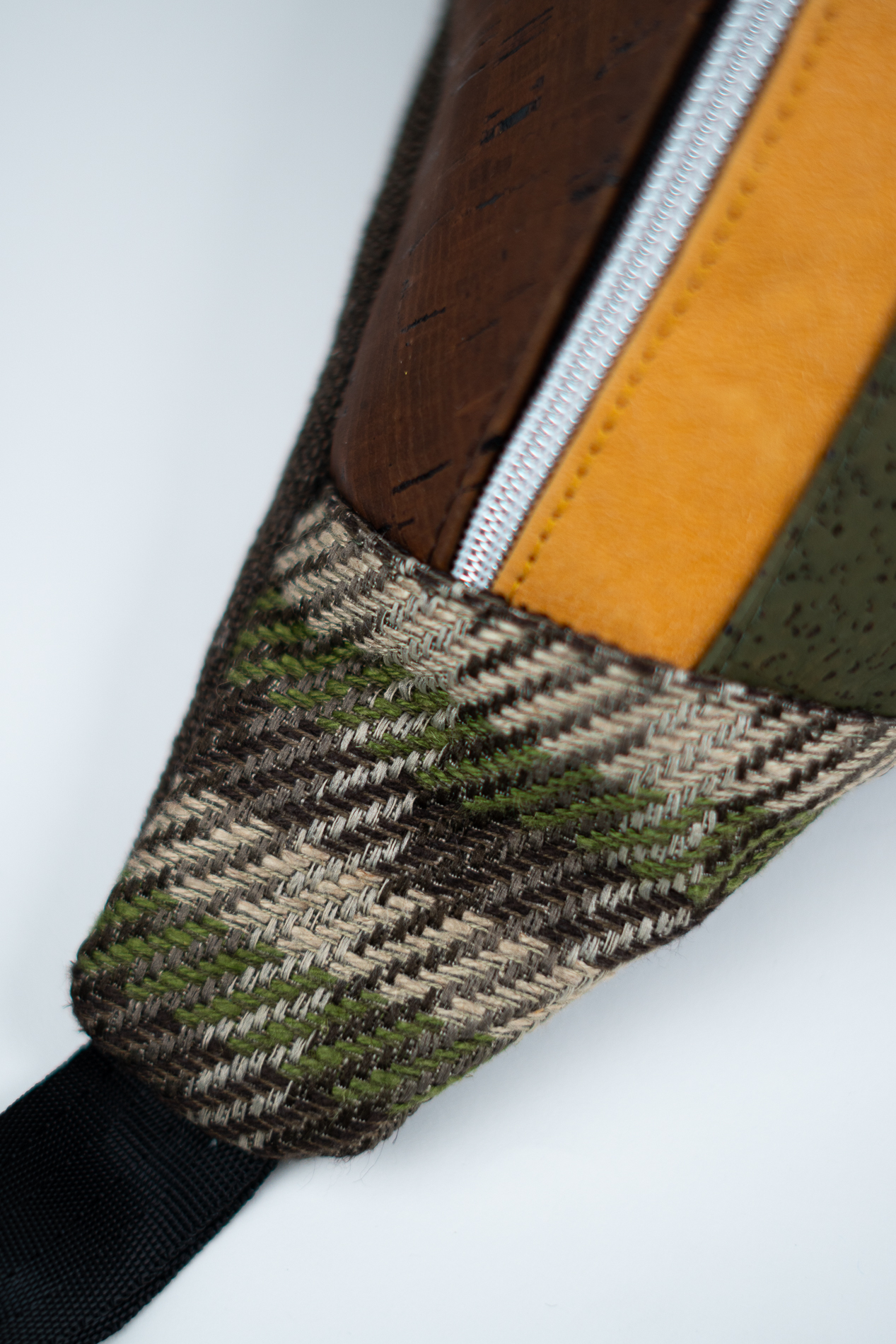 MATERIAŁ: kolorowa tkanina korkowa, tkaniny tapicerskie, wersja z bawełnianą podszewką 125 g/m2, pas samochodowy 25 mm.