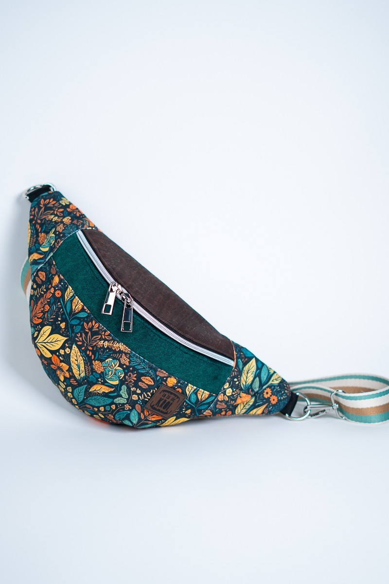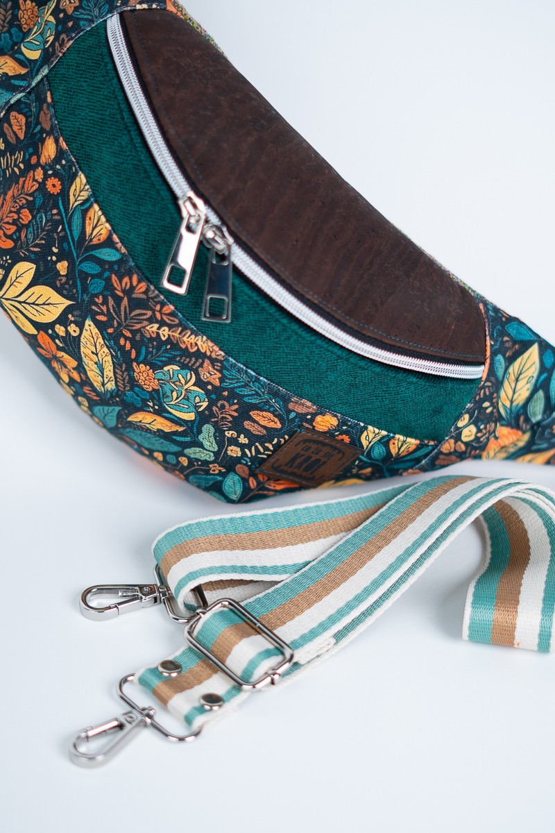 Zanurz się w barwach złotej jesieni z naszą nerka damską, ozdobioną motywem liści i delikatnymi elementami z korka. To połączenie natury i elegancji, które nie tylko podkreśla twój indywidualny styl, ale także wyraża troskę o środowisko. Nasza nerka to nie tylko modny dodatek, to również manifestacja piękna natury i dbałości o planetę. Przenieś swoją modową wrażliwość na wyższy poziom z naszą unikalną kolekcją. Nerka posiada kieszonkę na suwak w środku w podszewce. Nerka sprzedawana jest z wygodnym ozdobnym paskiem o szerokości 38 mm z regulacją o długości 110 cm. Jeżeli potrzebujesz dłuższy pas – napisz proszę w uwagach do zamówienia. Nerkę można zamówić również z czarnym, wąskim – 25 mm, klasycznym paskiem w cenie 180 zł. Taką nerkę znajdziesz również na sklepie cotusiekroi.pl.