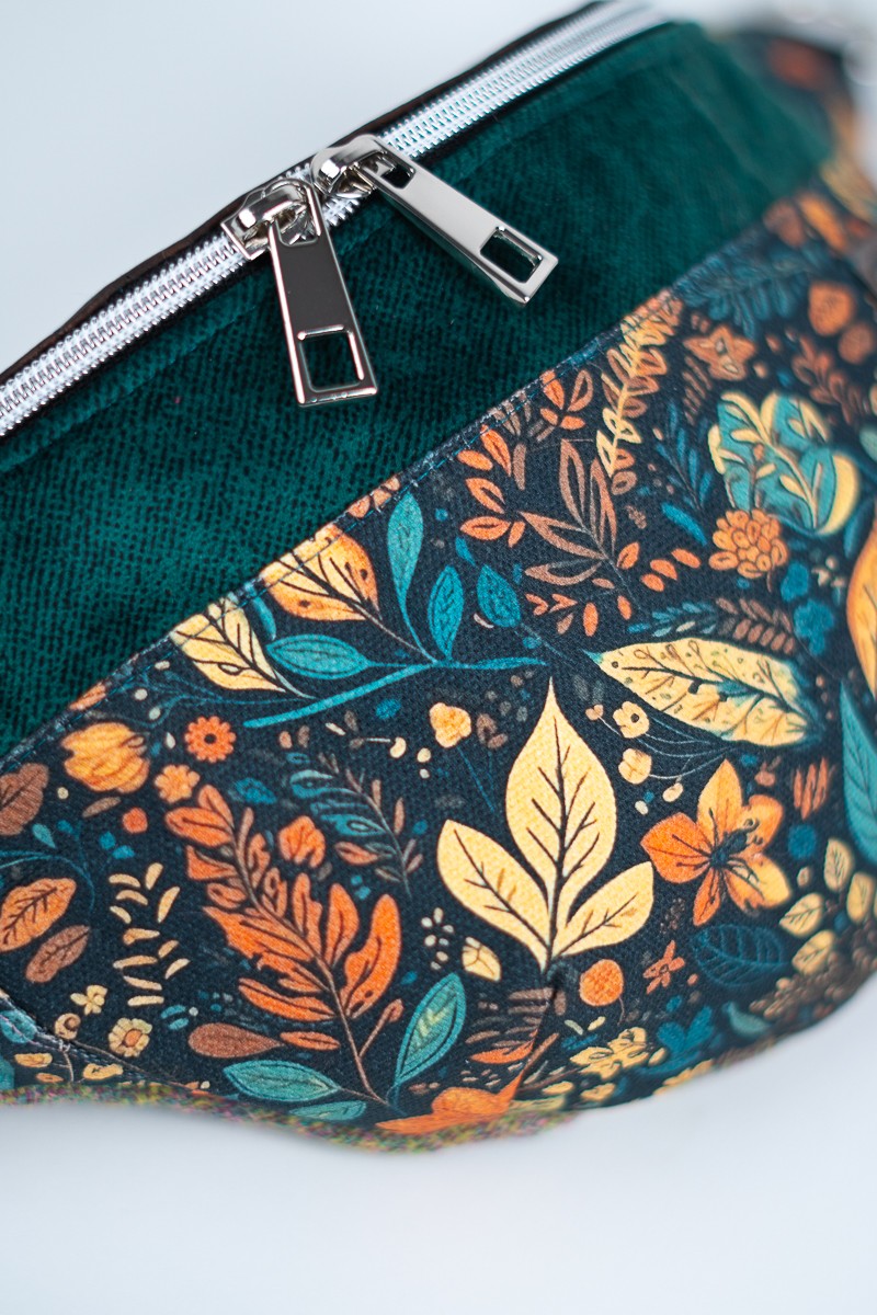 Zielona nerka damska w kolorowe kwiaty z ozdobnym paskiem JESIENNY LIŚĆ