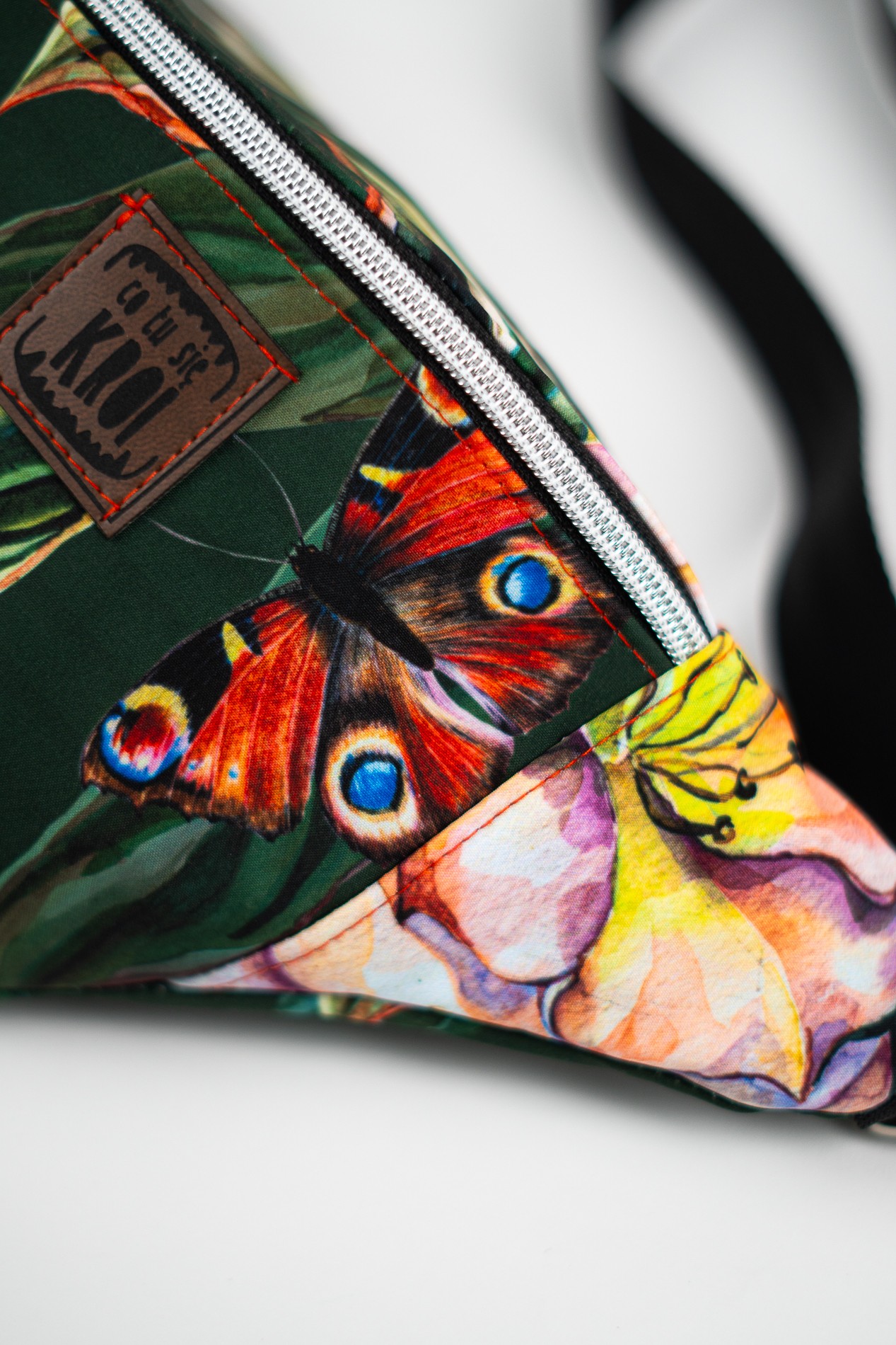 Nerka damska z kolekcji Tropikalna Opowieść to funkcjonalny dodatek o wyjątkowym charakterze. Przyciąga wzrok egzotycznym, kolorowym wzorem z liśćmi, kwiatami i motylami, które przenoszą w klimat dalekich podróży i dzikiej przyrody. Ten model to idealna propozycja dla kobiet, które kochają naturę, ale cenią też praktyczność i wygodę w codziennym użytkowaniu.